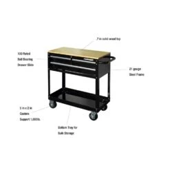 Husky Tool Storage 3-Drawer 36 In. W Standard Duty Gloss Black Rolling Tool Cart With Hardwood Top