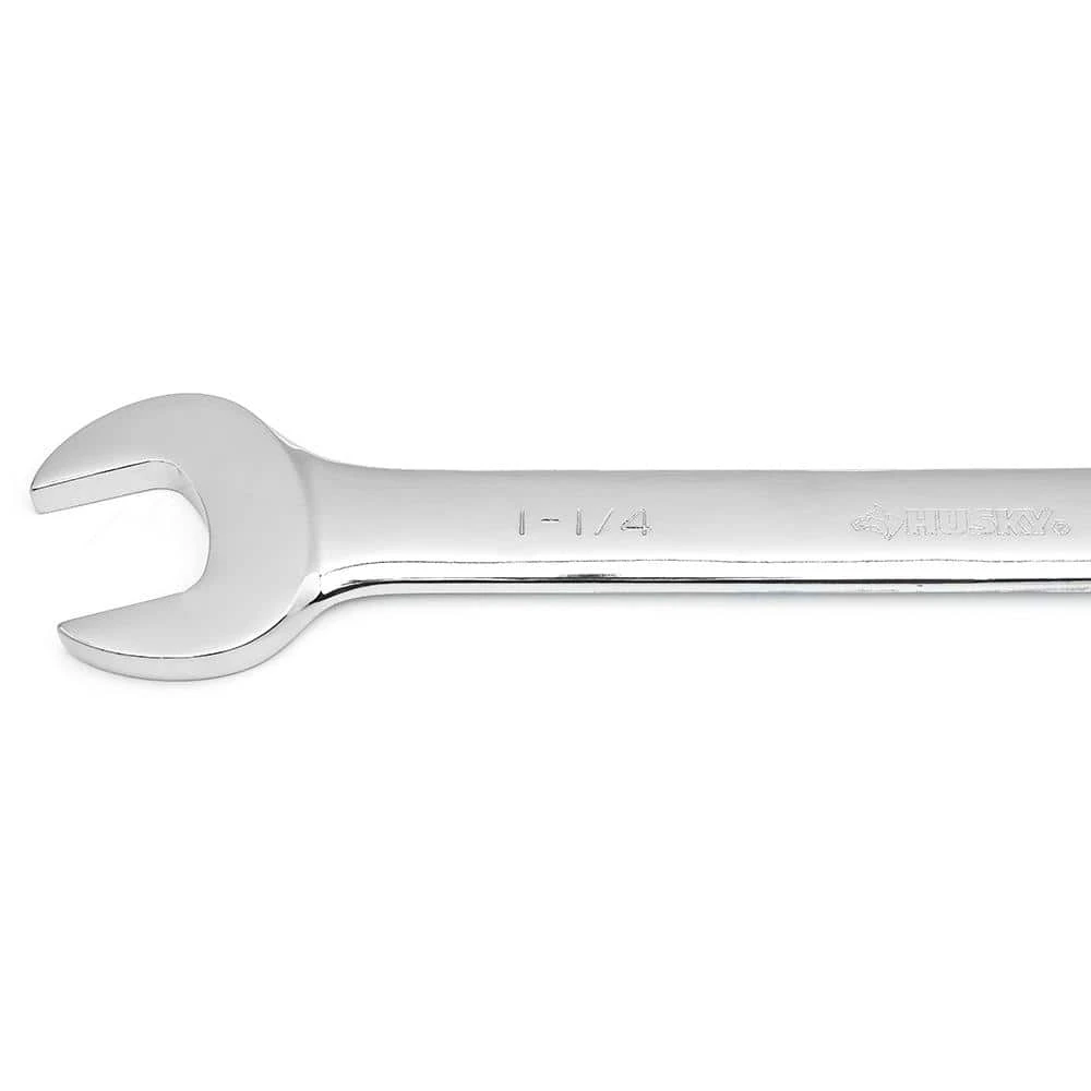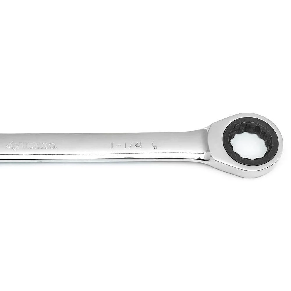 Husky’s ratcheting combination wrenches feature a 12-point, 72-tooth ratcheting box end that needs only 5° to engage fasteners. Each wrench is manufactured from chrome alloy steel and heat treated for added strength and wear protection; providing durability for a lifetime of hard use. Their polished chrome finish resists rust and corrosion and easily wipes clean of oil and dirt. Both the open and box end features chamfered lead-ins for quick and easy placement onto fasteners every time.