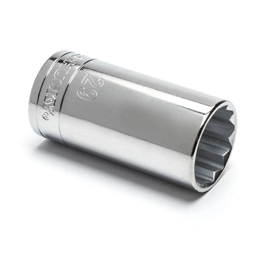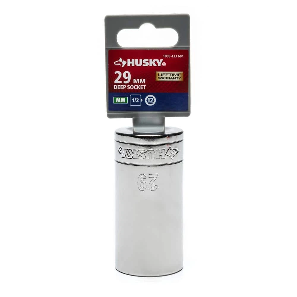 Husky 1/2 in. drive sockets are manufactured from chrome alloy steel and heat treated for added strength and wear protection, providing durability for a lifetime of hard use. Each socket features chamfered lead-ins for quick and easy placement onto fasteners every time. Their polished chrome finish resists rust and corrosion and easily wipes clean of oil and dirt.