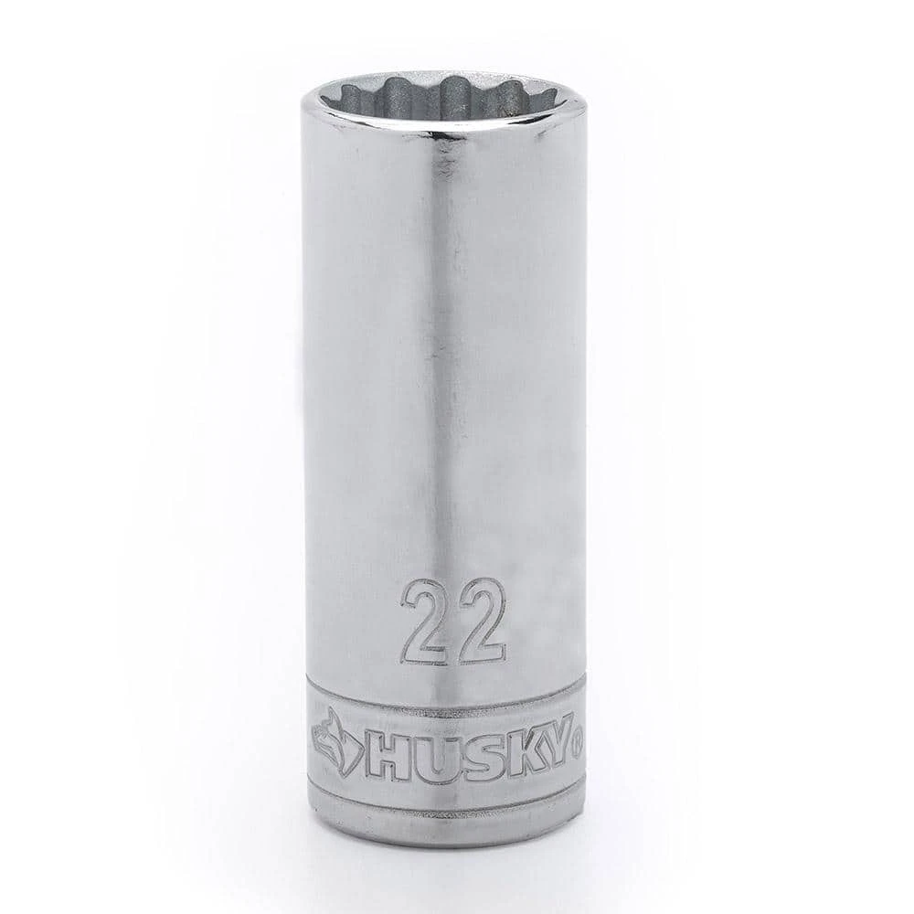 Husky 1/2 in. drive sockets are manufactured from chrome-vanadium steel and heat treated for added strength and wear protection, providing durability for a lifetime of hard use. Each socket features chamfered lead-ins for quick and easy placement onto fasteners every time. Their polished chrome finish resists rust and corrosion and easily wipes clean of oil and dirt.