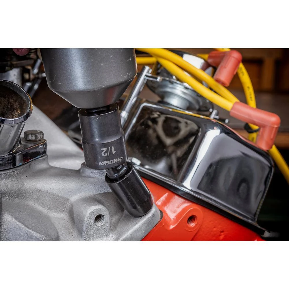 This is Husky’s most complete and widest selection of 1/2 in. drive Impact Sockets in 1 set all conveniently stored in single, easy to transport case. The 6-point style of socket helps to reduce the chance of rounding fasteners under high-torque applications and feature chamfered lead-ins for quick and easy placement onto fasteners. The industrial grade black oxide finish provides added durability and prevents corrosion.