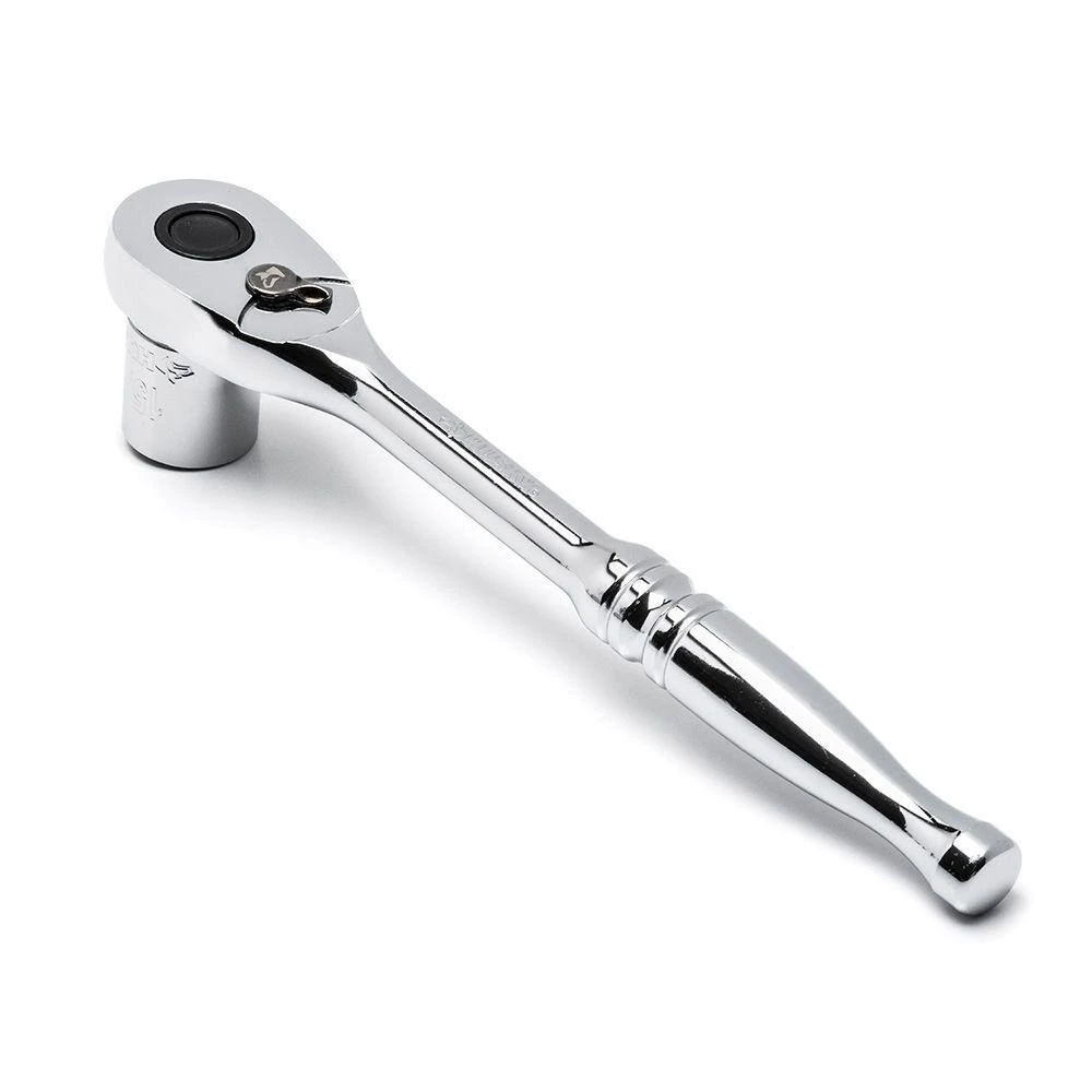 The Husky 1/2 in. Full-Polish Ratchet is made of alloy steel to provide excellent durability. The full polish chrome finish provides resistance to corrosion. This ratchet has a teardrop-style head with a low profile to allow for excellent access to nuts and bolts in tight locations.