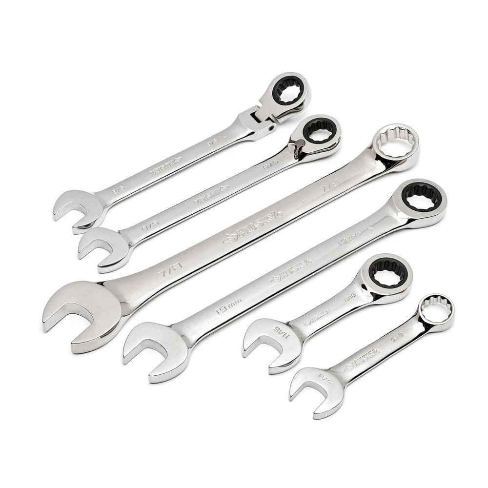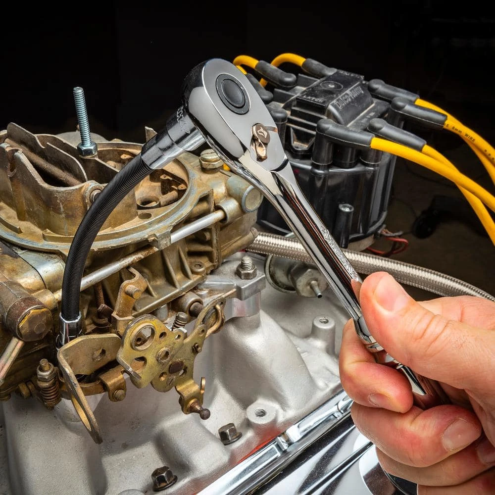 - Flex-head ratchets pivot up to 180°, ensuring access to hard-to-reach fasteners