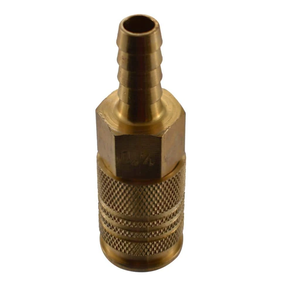 The Husky 1/4 in. x 3/8 in. Universal Coupler features heat-treated lock balls and brass construction for a long service life. The tubular valve design permits a high airflow for excellent tool performance. The coupler has a 3/8 in. barb fitting and a 1/4 in. snap-in fitting for simple connections.