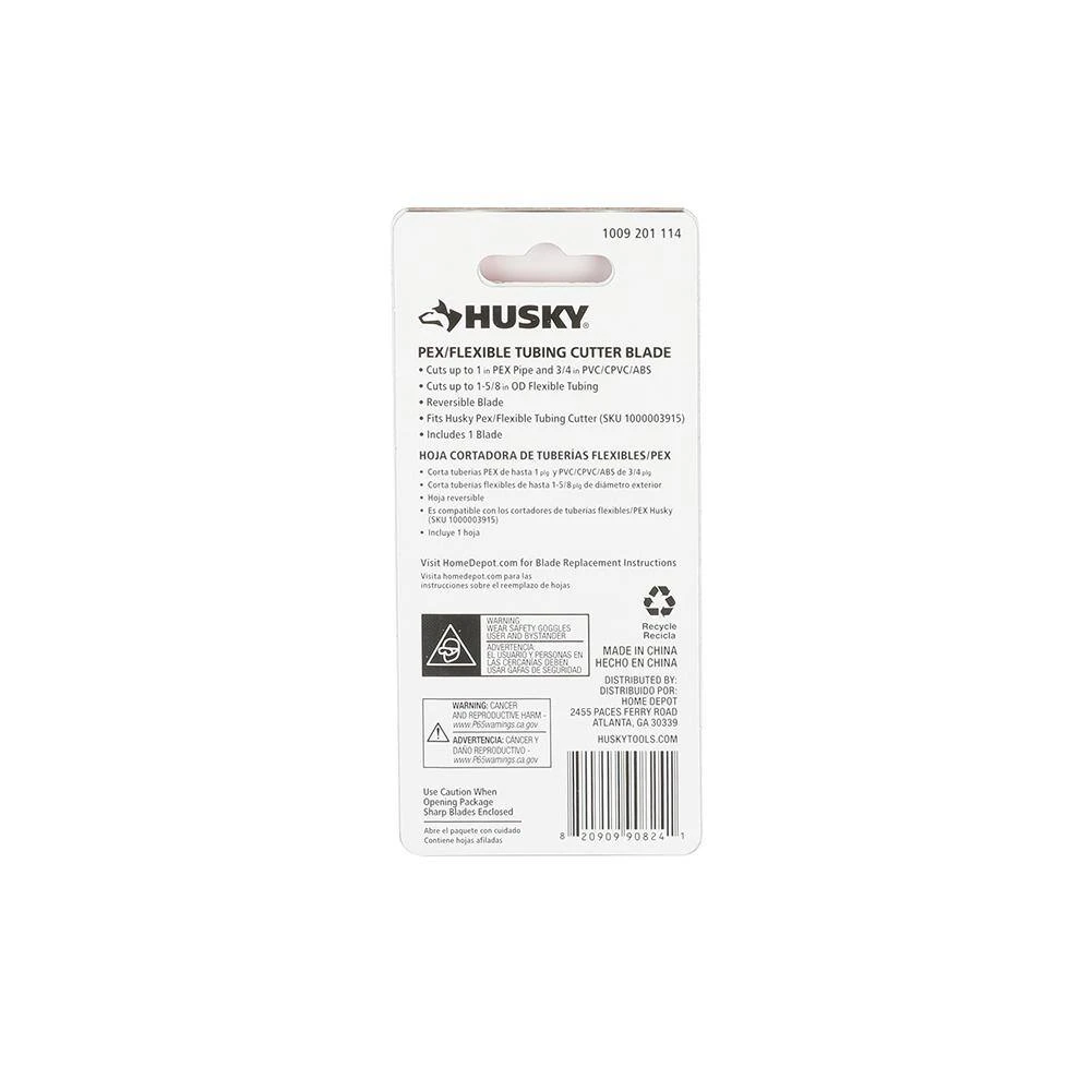 Husky’s replacement blade fits for Husky PEX/Flexible Tube Cutter(SKU#1000003915). The blades are reversible for an added life and increased durability. Cuts PEX pipe and flexible tubing up to 1-5/8 in. The perfect addition to your tool box.