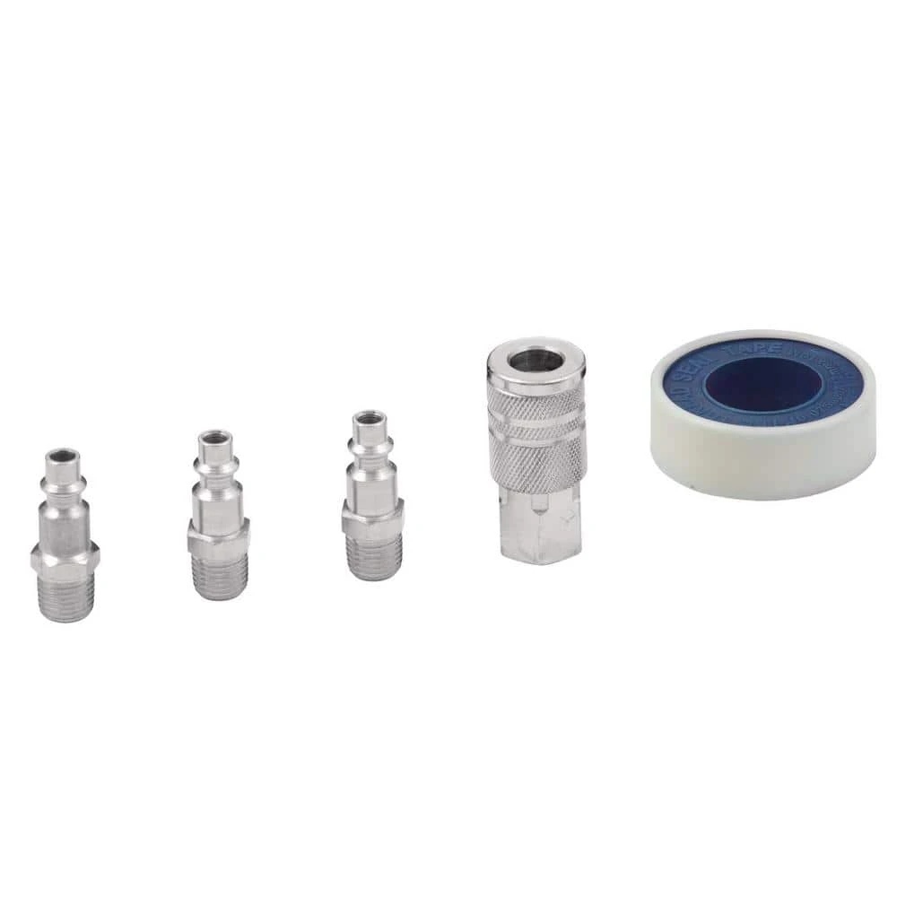 - Extra value kit includes the following: 25 ft. PVC hose, Husky air impact wrench, Husky air ratchet, 1 female QC, 3 male QC plugs, and roll of sealant tape