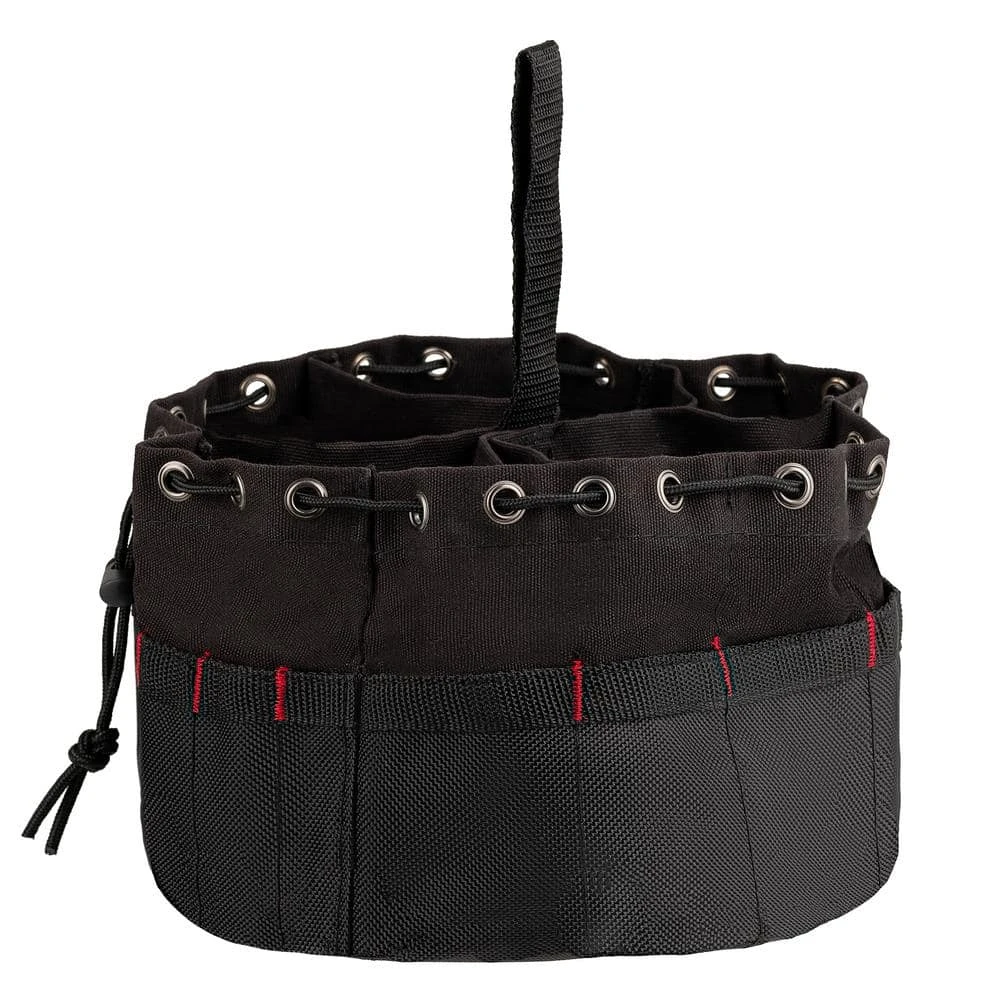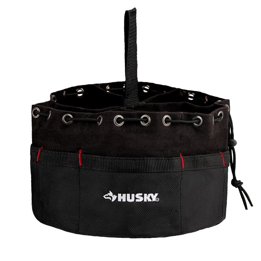 The Husky Black Canvas Small Parts Bag is a classic way to keep your small parts organized. Constructed of heavy-duty canvas, there are 6 divided sections with 19 total compartments to hold various small parts, accessories, drill bits, screws, nails, or more. The bottom and exterior pockets of the tool storage pouch bucket organizer are reinforced with poly ripstop material. You can stack 3-4 of these bags in a 5 Gal. bucket (not included).
