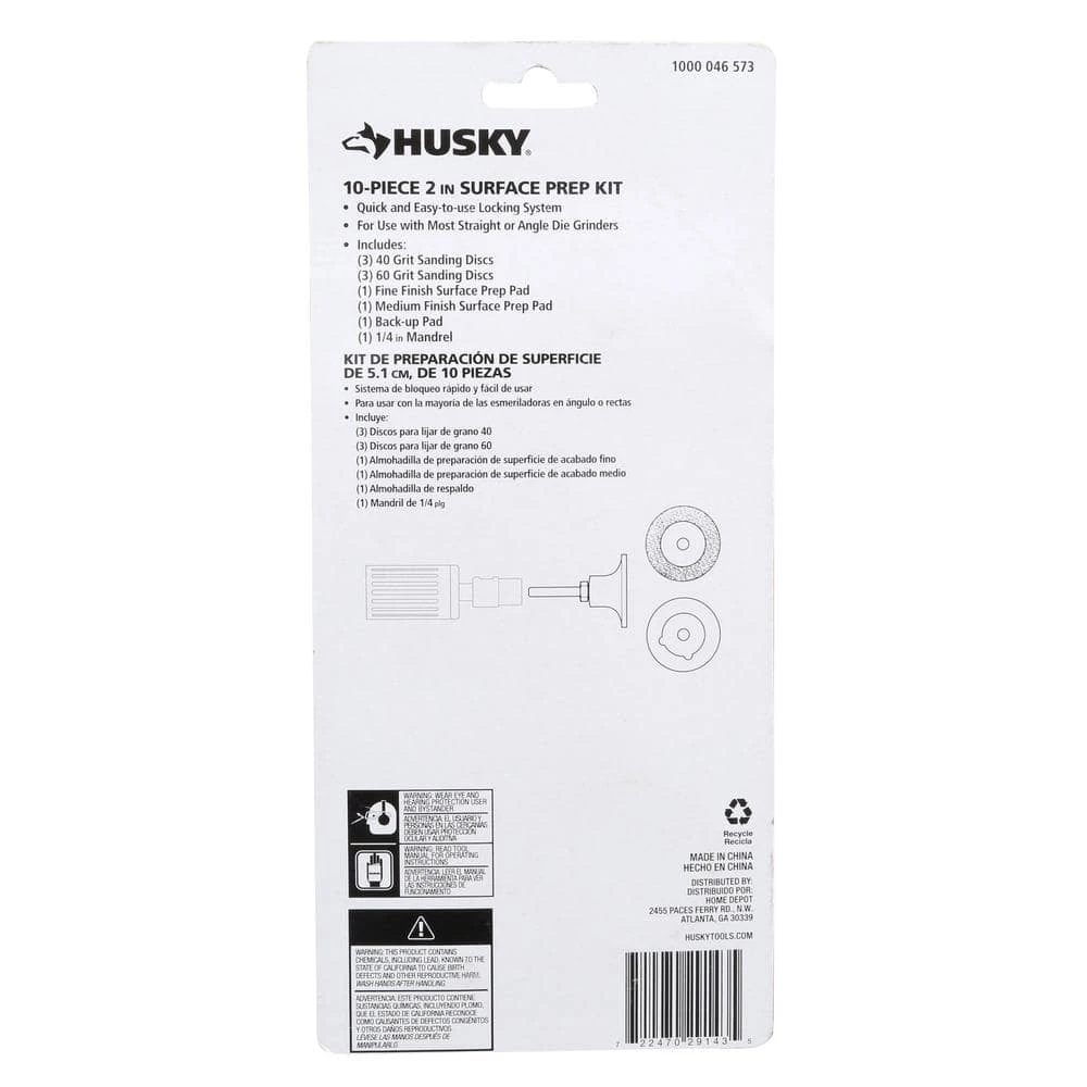 The Husky 10-Piece surface preparation kit is built to industrial standards for professional use. This kit is ideal for sanding, buffing and general surface preparation. The mandrel fits perfectly smoothly and easily into standard 1/4 in. Die Grinders. Kit features the ideal assortment to conquer even the toughest jobs.