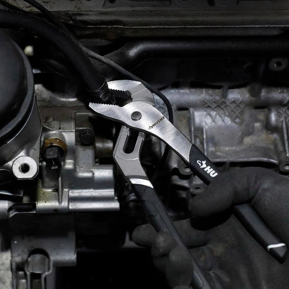 The Husky quick adjusting groove joint pliers are easier to adjust for the perfect fit. At the touch of a summary, the jaws can be moved to quickly fit a fastener without having to guess which the appropriate groove to use for size is. The multi-groove system has 2X the locking positions for a better fit than ordinary groove joint pliers. Rubberized handles provide for a comfortable, non-slip grip.