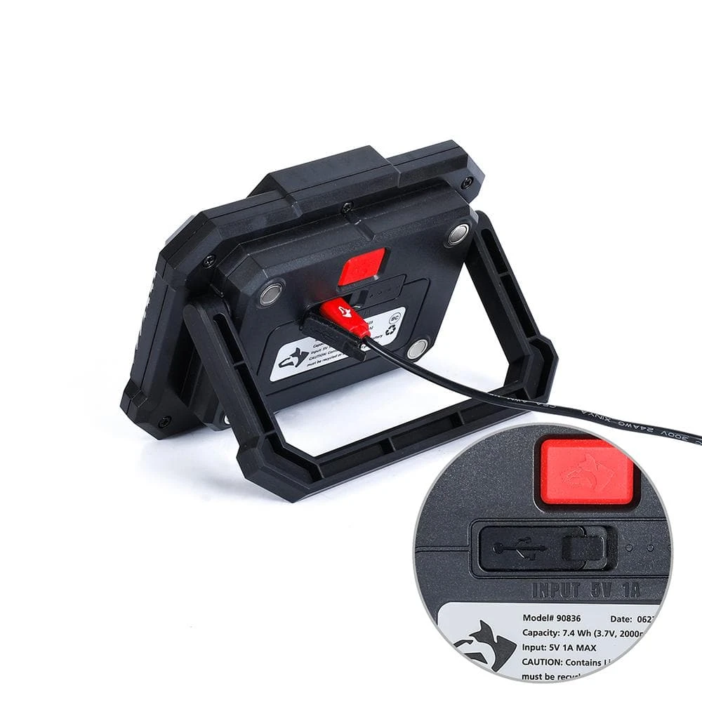 The great design of this 2-Pack, rechargeable utility Light features, a built-in magnet allowing you to keep your hands free while working. This light can be used for a variety of uses: camping, emergency use, lighting dark areas, and more. It’s equipped with super-bright LED lighting offering up to 1200 Lumens. There are three modes: high, low and ECO. High mode (1200 LM) provides up to 2 hrs. of run time and 10m beam throw. Low mode (500 LM) provides up to 5 hrs. of run time and 8M beam throw. ECO mode (80 LM) provides up to 12 hours of run time. Each utility light is powered by (2) 2000 mAh lithium-ion battery capacity that provides a bright light. The durable plastic construction and light-weight design make this a unique light, great for any project.