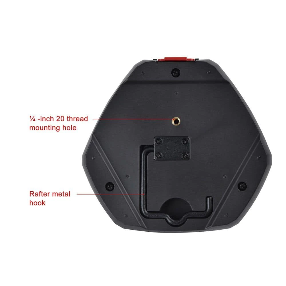 - Multiple mounting options including integrated handle for portable, rafter metal hook for hanging and ¼ -inch 20 thread mounting hole fitting for tripod (sold separately)