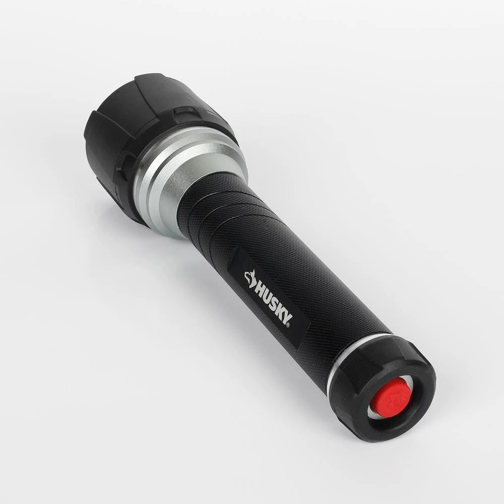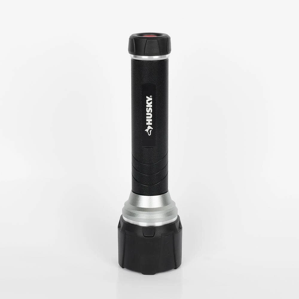 The Husky 1500 Lumens Unbreakable Flashlight is built to tolerate abusive treatment. Drop-tested from 30 ft. and waterproof up to 1 m, this flashlight is capable of withstanding the most demanding work conditions. The premium LED lighting offers 3-modes high, low and strobe powered by 6-pieces Energizer AA alkaline batteries (included). The ergonomically designed aluminum body features a rubber coating for superb comfort and grip.