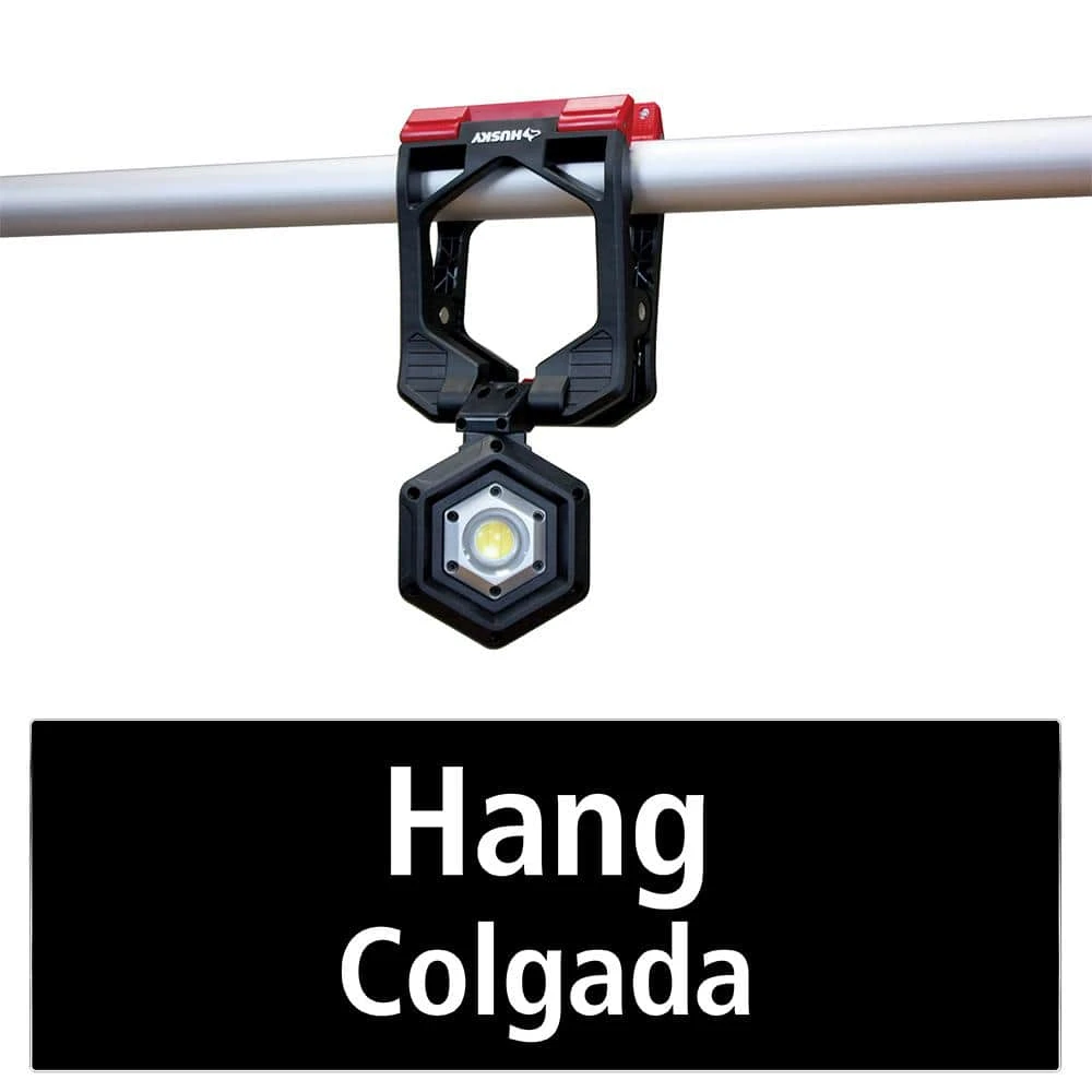 The Husky Clamp Work Light pivots a full 360° putting light anywhere you need it. The sturdy integrated clamp holds tight to most pipes, doors, wood framing and more. Don’t worry about any scratching or scuffing, the non-marring feet leave no trace. Utilizing COB technology, this light runs brighter and longer than traditional LEDs – boasting 1500 Lumens with a USB rechargeable battery. When this light is not clamped, you can easily lock the legs open, converting it to a free-standing work light. Constructed of rugged aluminum and ABS plastic, this innovative design also locks closed for ease of storage.