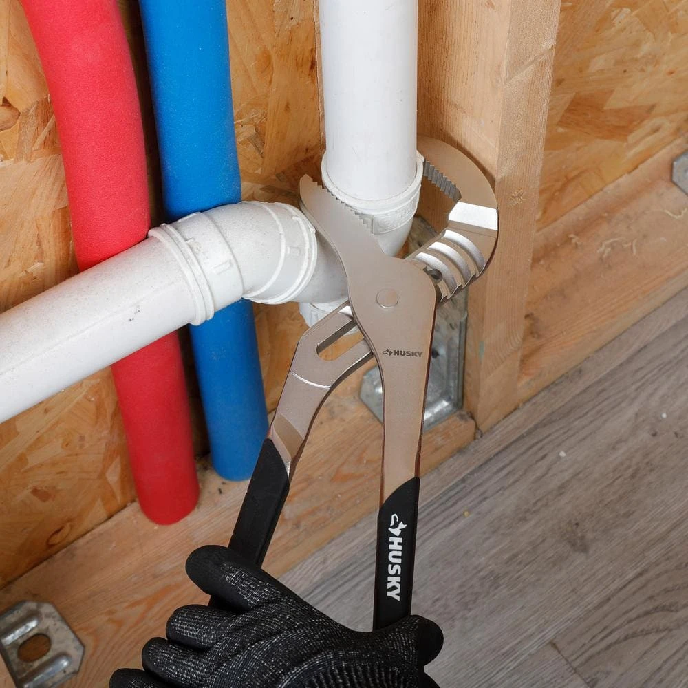 The 16 in. Husky Groove Joint Pliers also known as tongue and groove pliers are often used for gripping irregularly shaped objects. They can also be used for clamping materials. They are also commonly used for turning and holding nuts and bolts. An advantage to this design of pliers is that it can adjust to a number of sizes without the distance in the handle growing wider. These pliers generally have long handles for increased leverage.