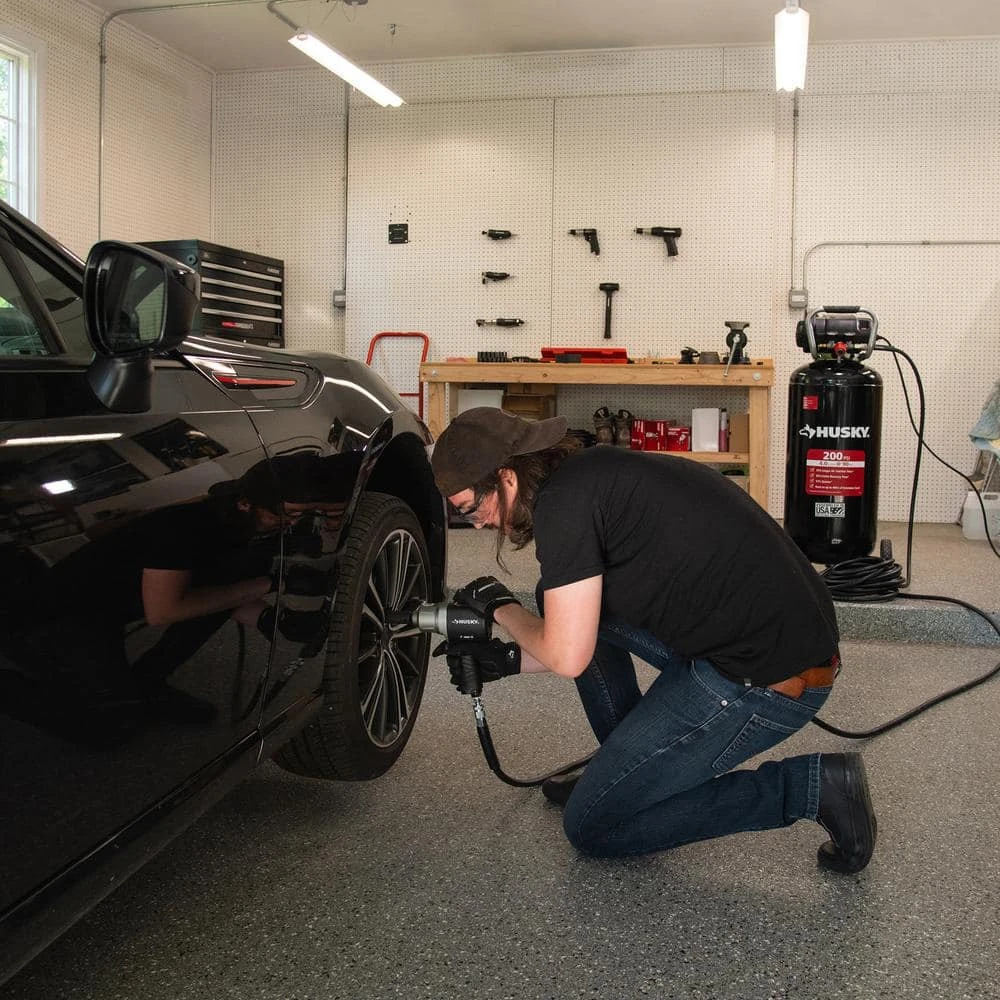 The Husky 20 Gal. oil free air compressor is industry leading with high performance technology. This Husky 20 Gal. portable vertical air compressor with 200 maximum psi provides 35% longer air tool run time compared to typical 20 Gal. compressors with 175 maximum psi . At 81 dBA, the oil free pump brings less noise to your work environment and has a 57% sound improvement versus typical 20 Gal. compressors with 175 maximum psi. The high efficiency motor allows for easier cold weather start as low as -20° F (-29° C) and extension cord application up to 400 ft. of extension cord. The Husky 20 Gal. 200 PSI air compressor is perfect for light automotive tasks, agricultural equipment repairs and intermittent use for metal working applications.