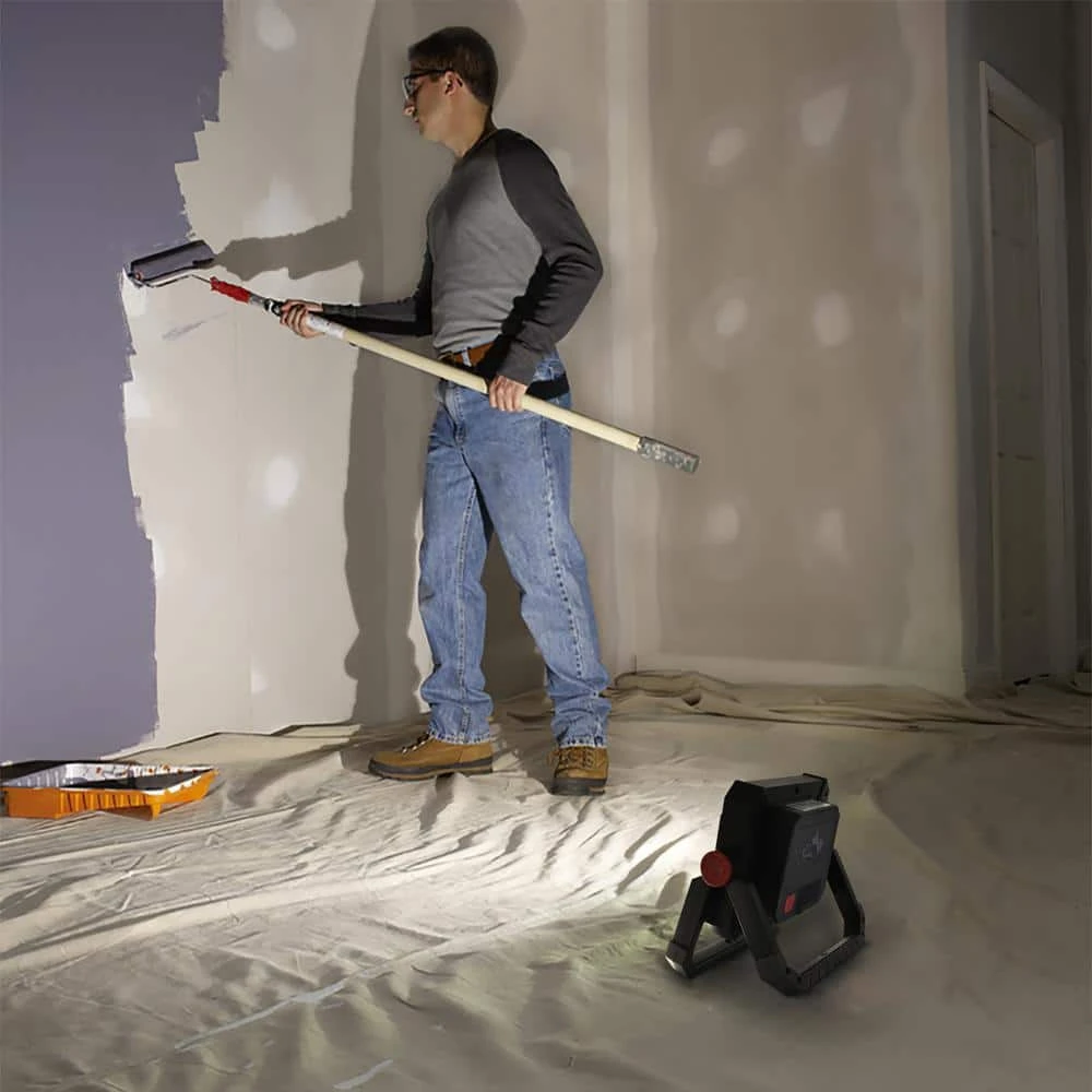 Husky 2000 Lumens Rechargeable LED Work Light has 4 modes: High-mid-low-strobe. Besides the convenient rechargeable function, it also works as a power bank and charge for other devices. It provides ample lighting with its super bright and long-lasting LED. It can work with or without tripods and its easy grip handle also allows it to be transported with ease. The reinforced light edge and handle make it durable to use yearly round. Featuring 360° vertical rotation, never been that easy to adjust the light angle, ideal for indoor and outdoor use.