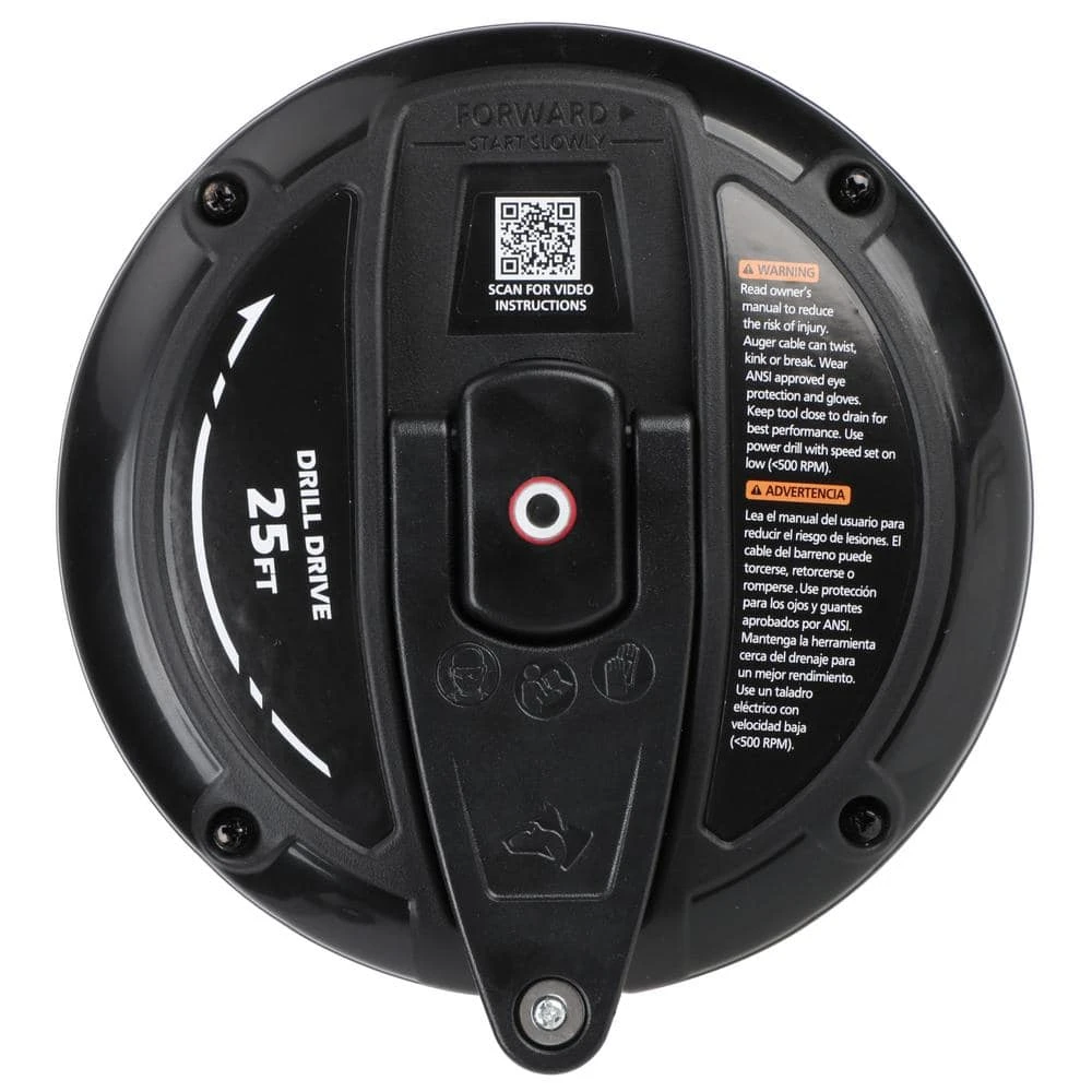 - Can be operated manually or with a drill attached for stubborn clogs (drill not included)