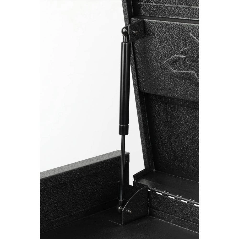 - Dual gas struts assist with opening and closing of lid