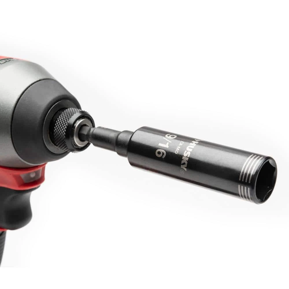 The Husky 3/8 in. drive Thin Wall Impact socket set features a 6-point design. These sockets are up to 2-times stronger than standard chrome sockets and 20% slimmer than impact sockets. This socket set can be used with a standard ratchet or with your cordless impact tools, removing the need for 2 sets of sockets.