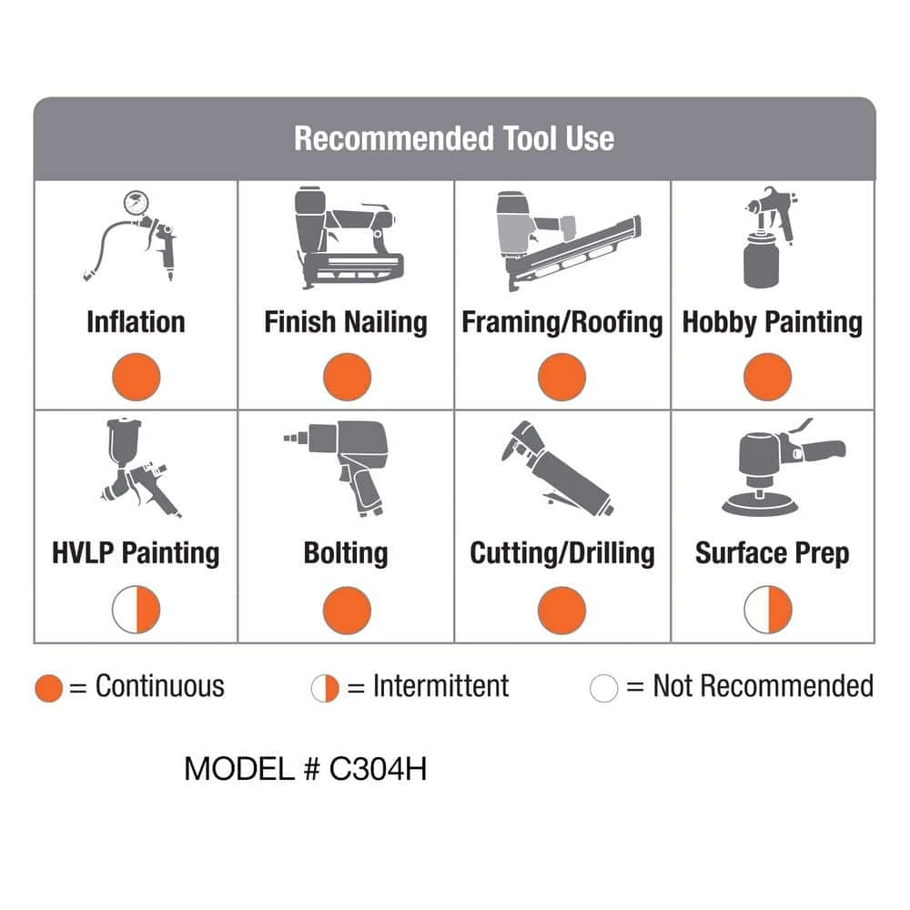 - 20% longer air tool run time compared to 30 gallon 2 Stage compressors with 175 PSI and 4.4 CFM at 90 PSI