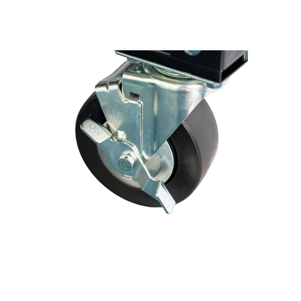 - Heavy-duty 5 in. x 2 in. casters (2 swivel with brake and 2 rigid)
