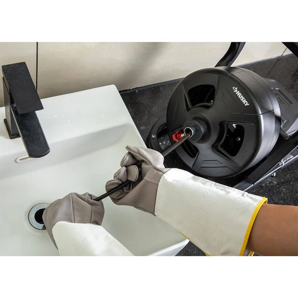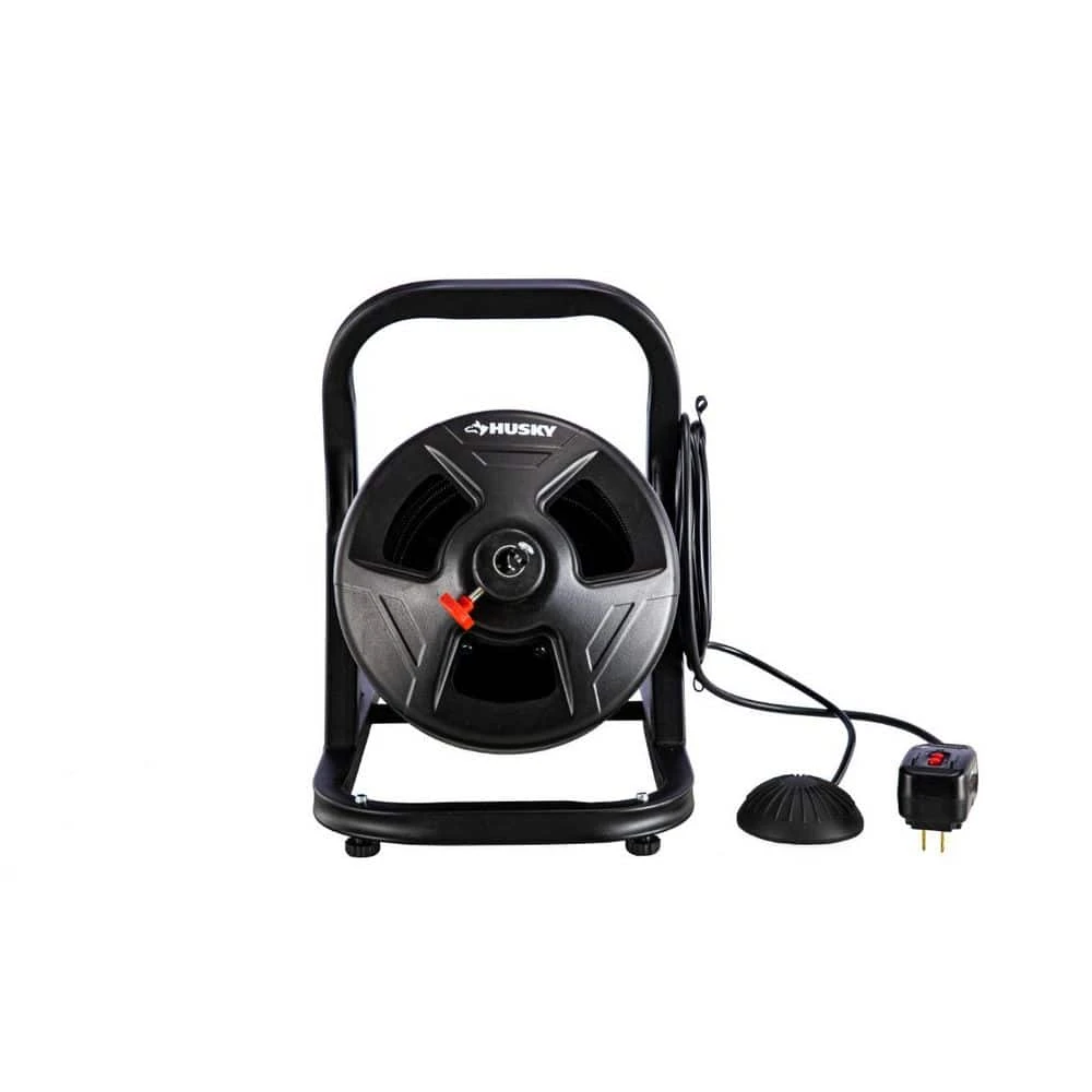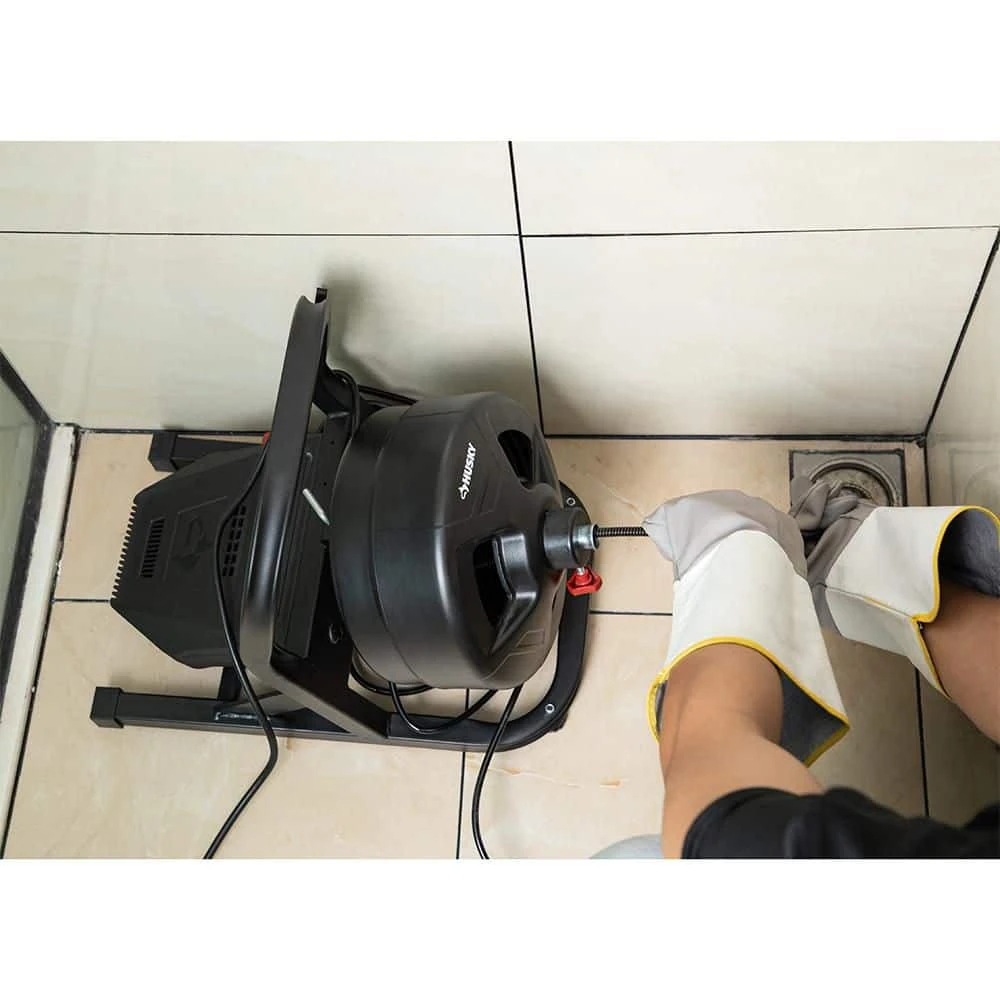 Clear sinks, showers and tub drains with the husky 5/16 in. x 50 ft. Cable Drum Machine. Designed to clear clogs in 3/4 in. – 3 in. diameter pipes up to 50 ft. deep. Can be operated hands-free with a pneumatic foot switch and includes a durable steel frame and cutter kit for tackling tough obstructions.