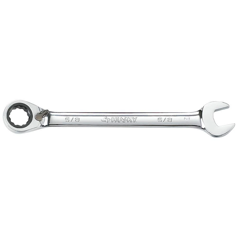 Husky’s reversible ratcheting combination wrenches feature a 72-tooth ratcheting box end that needs only 5° to engage fasteners and a reverse lever for making quick directional changes. Each wrench is manufactured from chrome alloy steel and heat treated for added strength and wear protection; providing durability for a lifetime of hard use. Their polished chrome finish resist rust and corrosion and easily wipes clean of oil and dirt. Both the open and box end features chamfered lead ins for quick and easy placement onto fasteners every time.