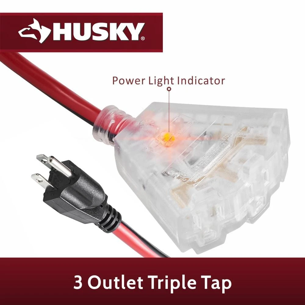 - Triple tap end featuring 3 outlets to power multple electrical items