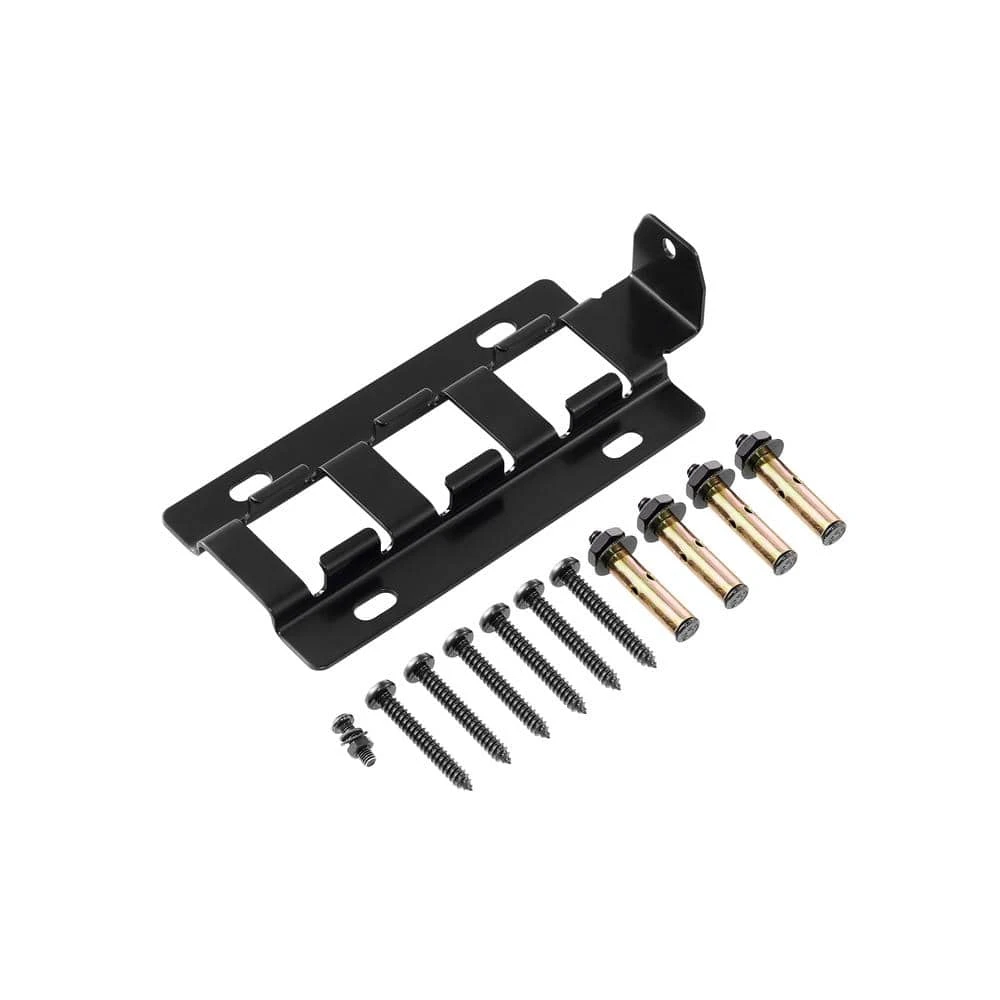 - Mounting bracket can easily be affixed to a wall or a bench