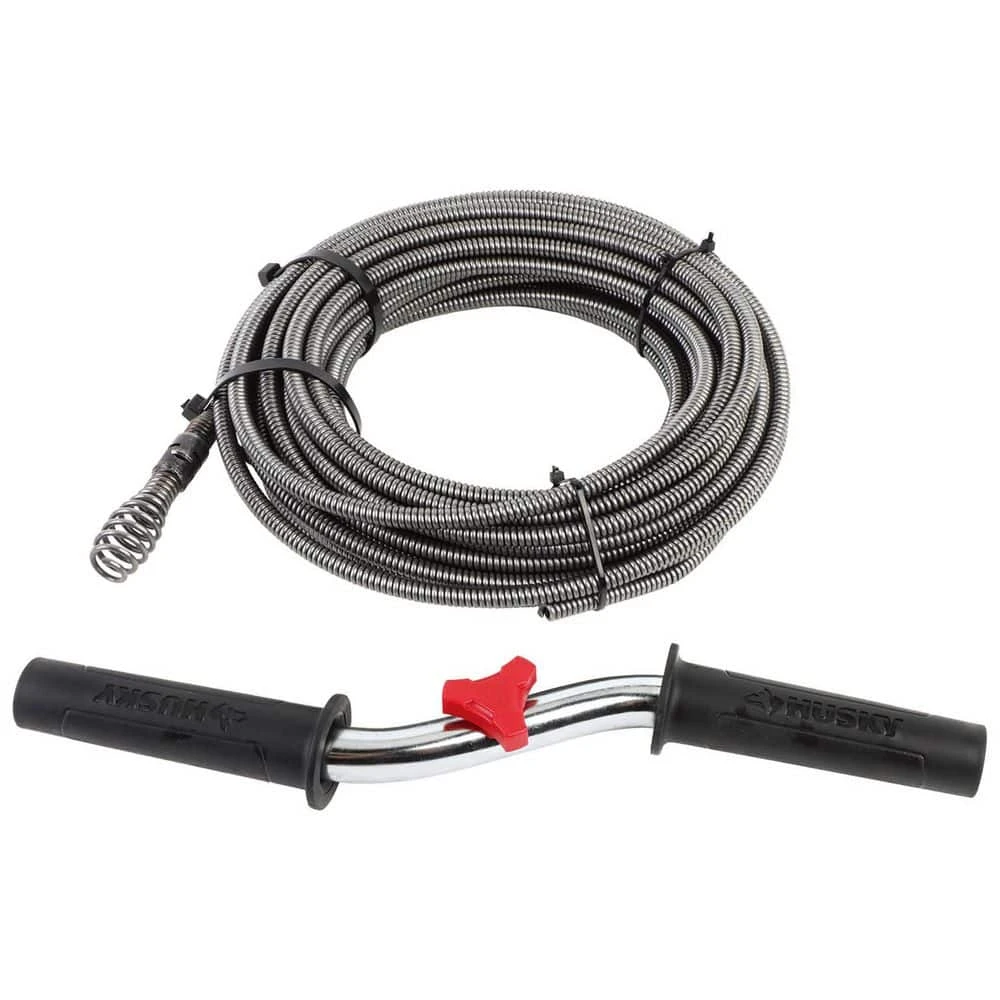 The Husky 5/16 in. x 50 ft. Universal Drain Auger works manually or as a replacement cable in most 5/16 in. compatible Electric Drum Machines. It can be used to clear 2 in. – 4 in. drain lines. The galvanized steel easy-spin handle features large ergonomic grips to manually apply torque, when used without an electric drum machine. Built to last and backed by the Husky lifetime warranty.