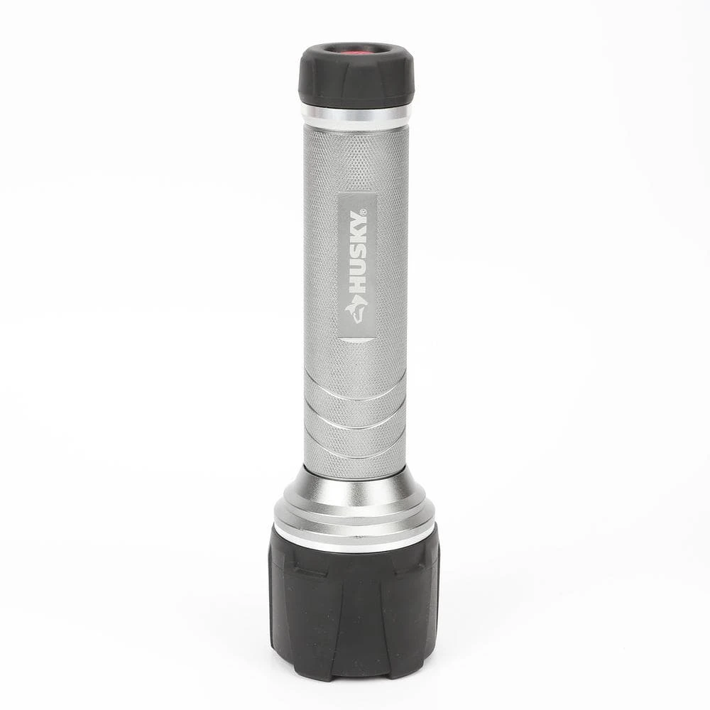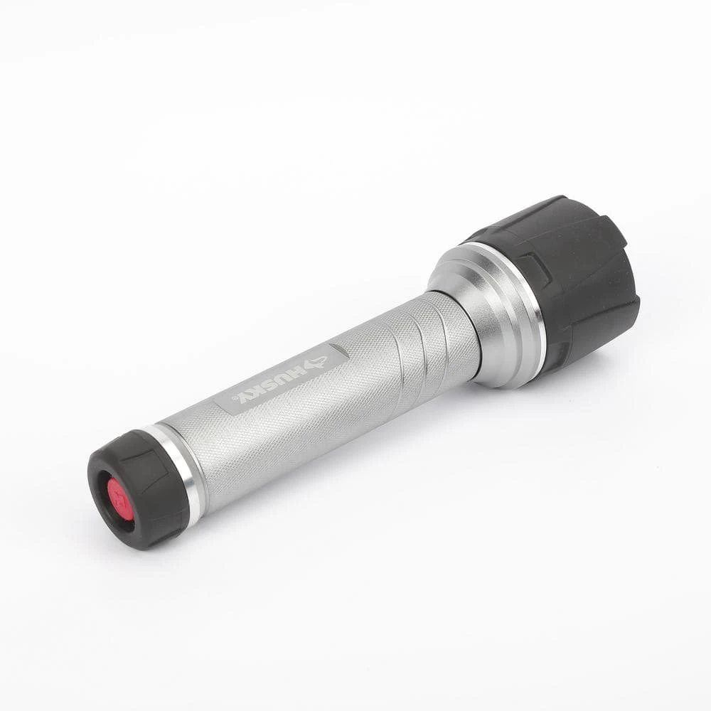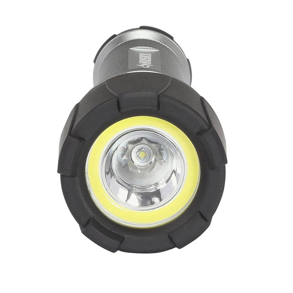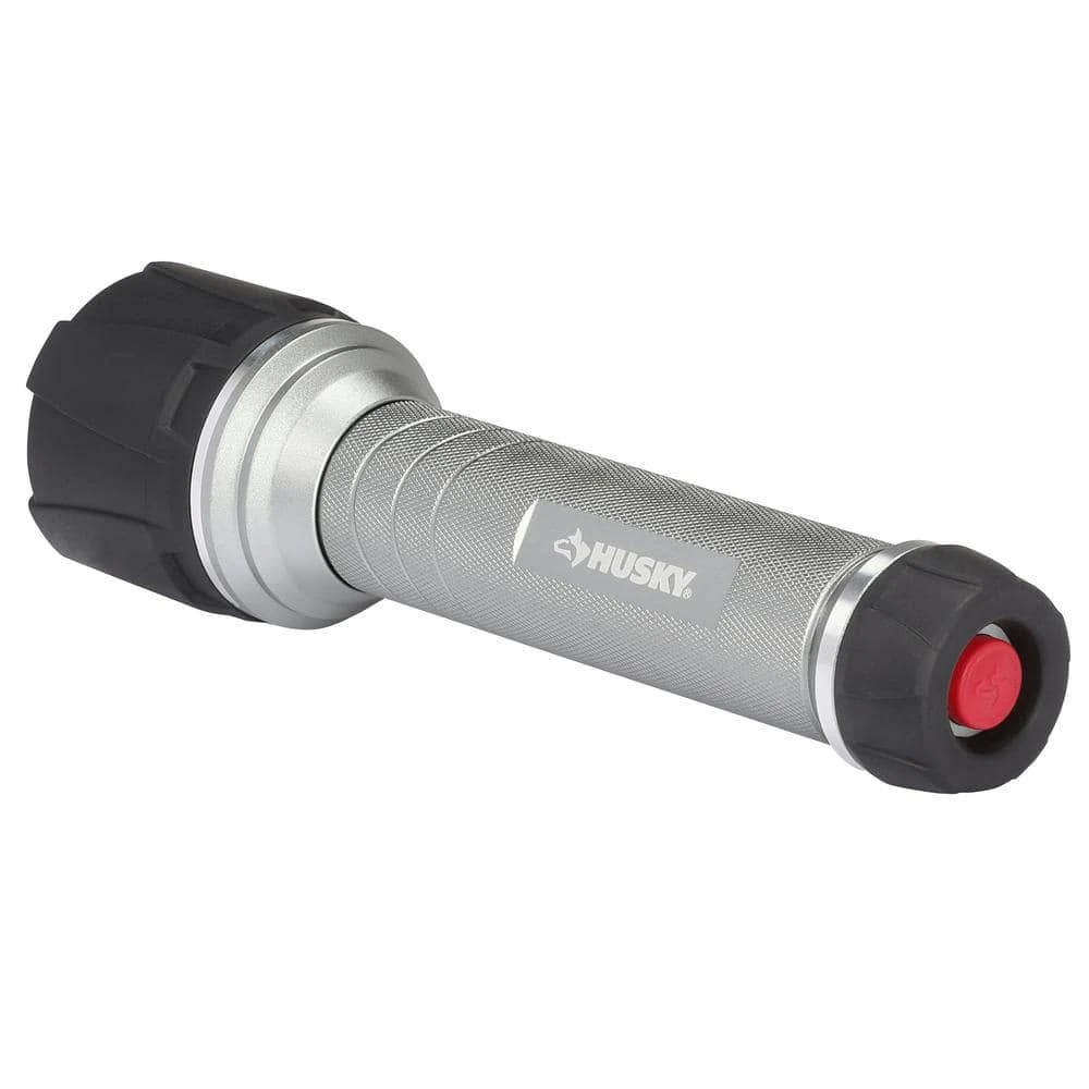 The Husky 500 Lumens Dual beam unbreakable flashlight features durable aluminum casing that resists rust and corrosion. Choose between 3 illumination levels between: spot, flood, both spot+flood modes. With high power LED and COB chip, you get an even, very bright, wide range of lighting. This powerful light weighs 1.28 lbs with a gripping surface that makes it comfortable to hold. Drop test rated from 30ft and waterproof to 1m.