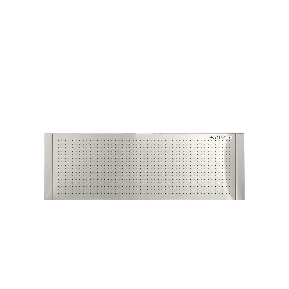The Husky Stainless Steel Pegboard Back Wall adjust from 52 in. W to 72 in. W making this the perfect accessory to select Husky Mobile workbenches. It adds vertical storage to hang a variety of items, including your heavier power tools. The heavy-duty, 21-Gauge steel will support up to 150 lbs. and is much stronger than conventional pegboard. The peg holes will accommodate most 1/4 in. and 1/8 in. peg hooks, which are positioned 1 in. on center.