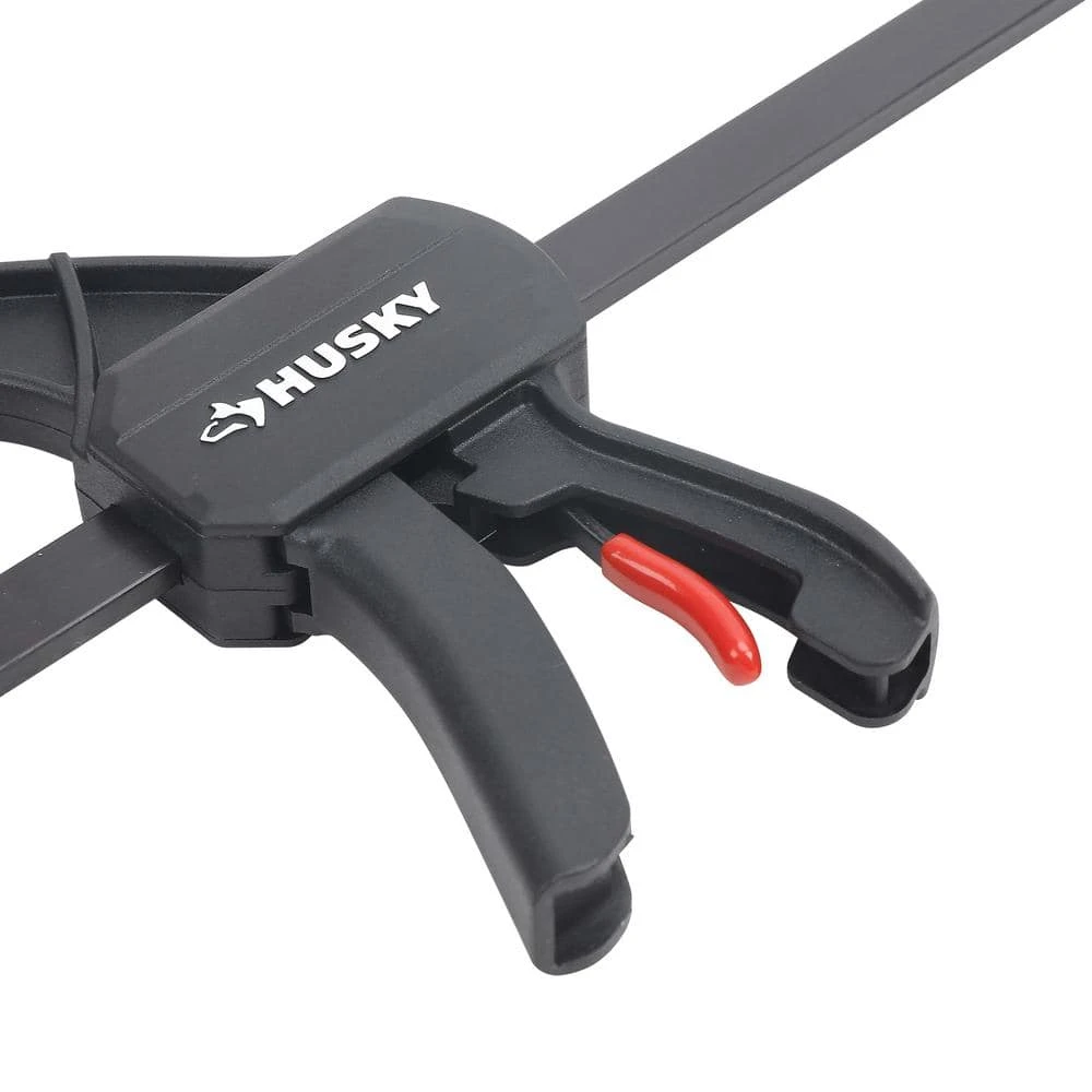 The 4-piece 6 in. medium-duty trigger clamps offer increased clamping pressure. The new expandable feature allows for 2 clamps to be combined into 1 single clamp. The feature allows the user to add an additional 6 in. of clamping length to their bar clamps when combined. These bar clamps also feature a quick release mechanism for easy changes to the expandable or reversible position. They have 100 lbs. clamping force. Reinforced nylon body makes wear and tear difficult.