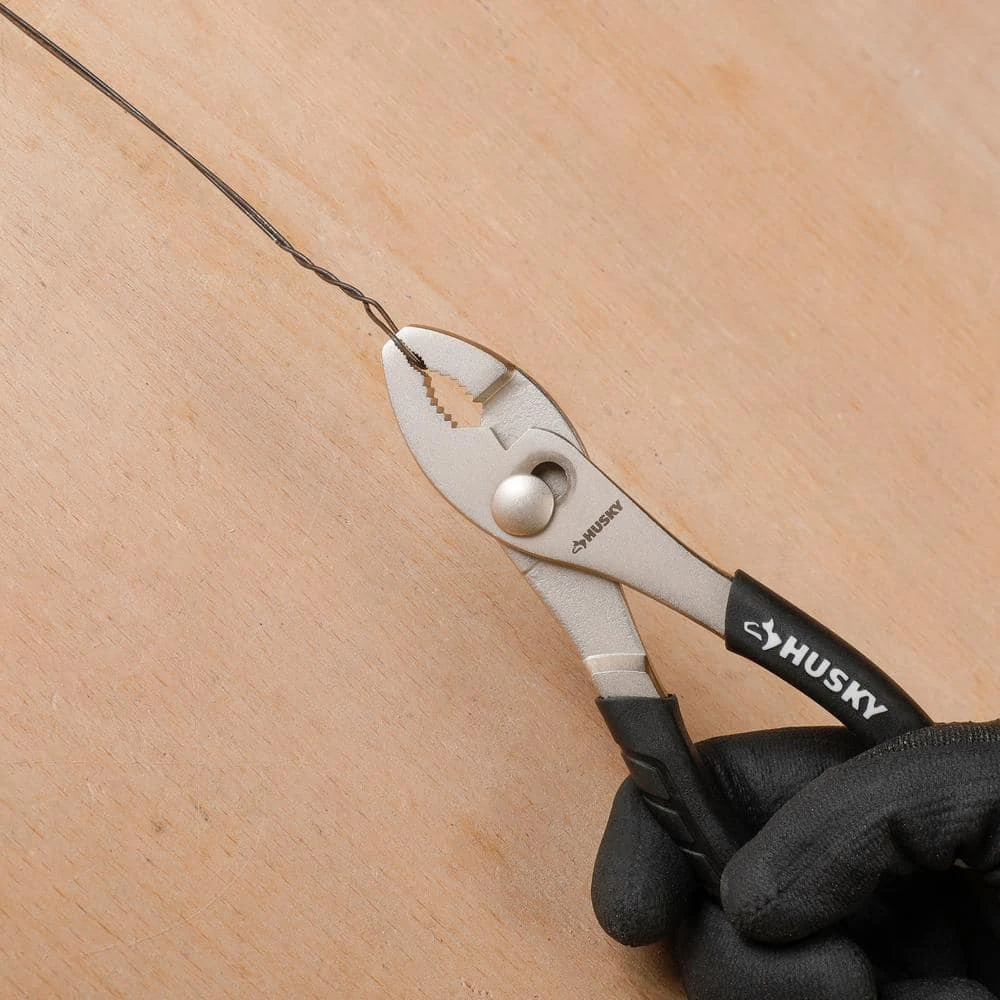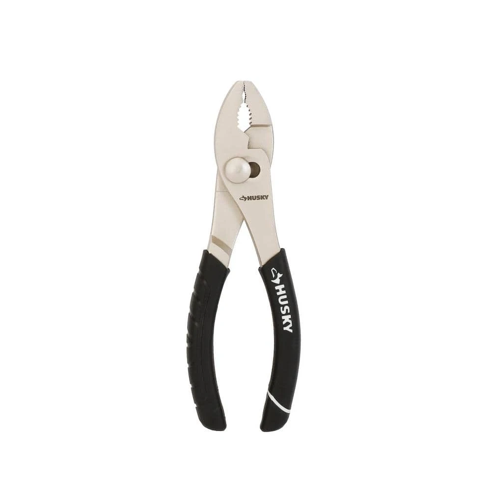 The Husky 6-inch standard slip joint pliers are designed for turning or bending small objects. They provide a strong grip, making them ideal for gripping nails, nuts, bolts, and other small items. Common uses also include holding and pressing objects together or cutting wire. These pliers feature a dual-sized jaw for various applications and are built to be durable with a comfortable, non-slip grip. Additionally, a rust-protective coating offers increased protection against corrosion. The low-profile design allows the pliers to fit into confined and tight spaces easily.