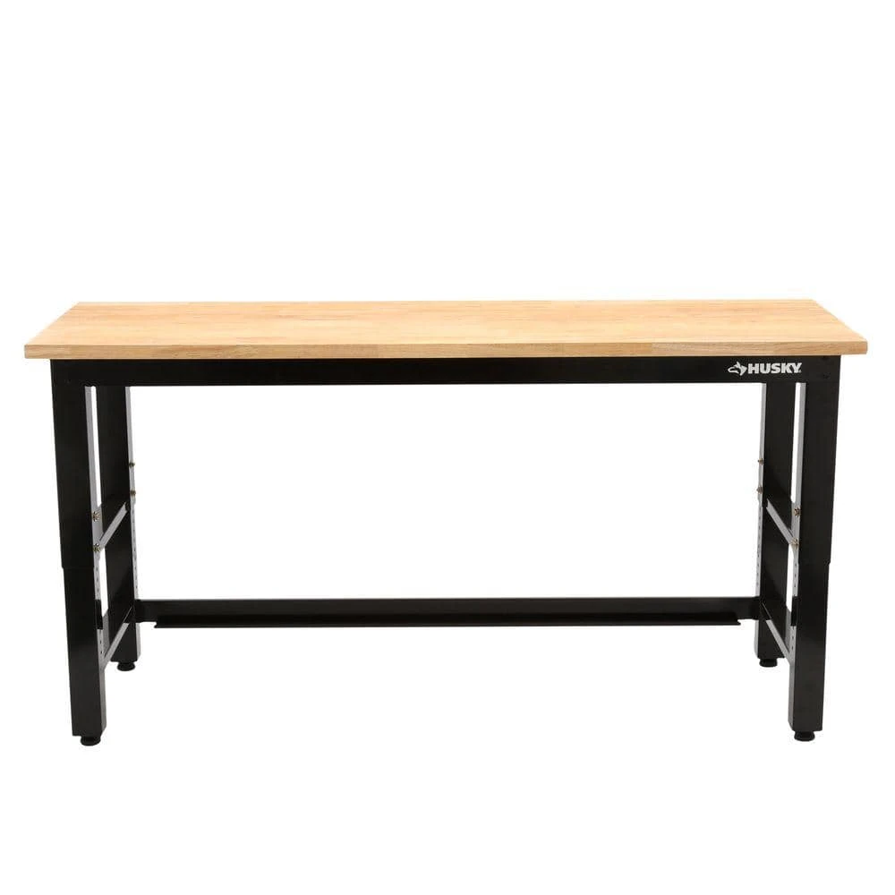 Give yourself more workspace with this 6 ft. Adjustable Height Solid Wood Top Workbench in Black for Ready to Assemble Steel Garage Storage System. Easily place this in your garage to complete projects and tasks. It features a hardwood top for durability. Adjust the height of the workbench to fit your needs.