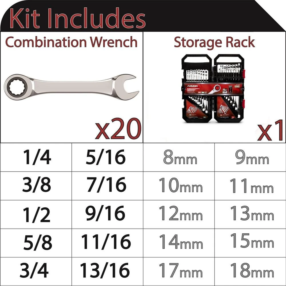 Husky Ratcheting Wrenches feature a 12-point design pattern to help prevent fastener damage and increase torque. Their slim design fits into tight spaces where other wrenches may not. A durable, polished chrome finish provides corrosion resistance for a lifetime of use.