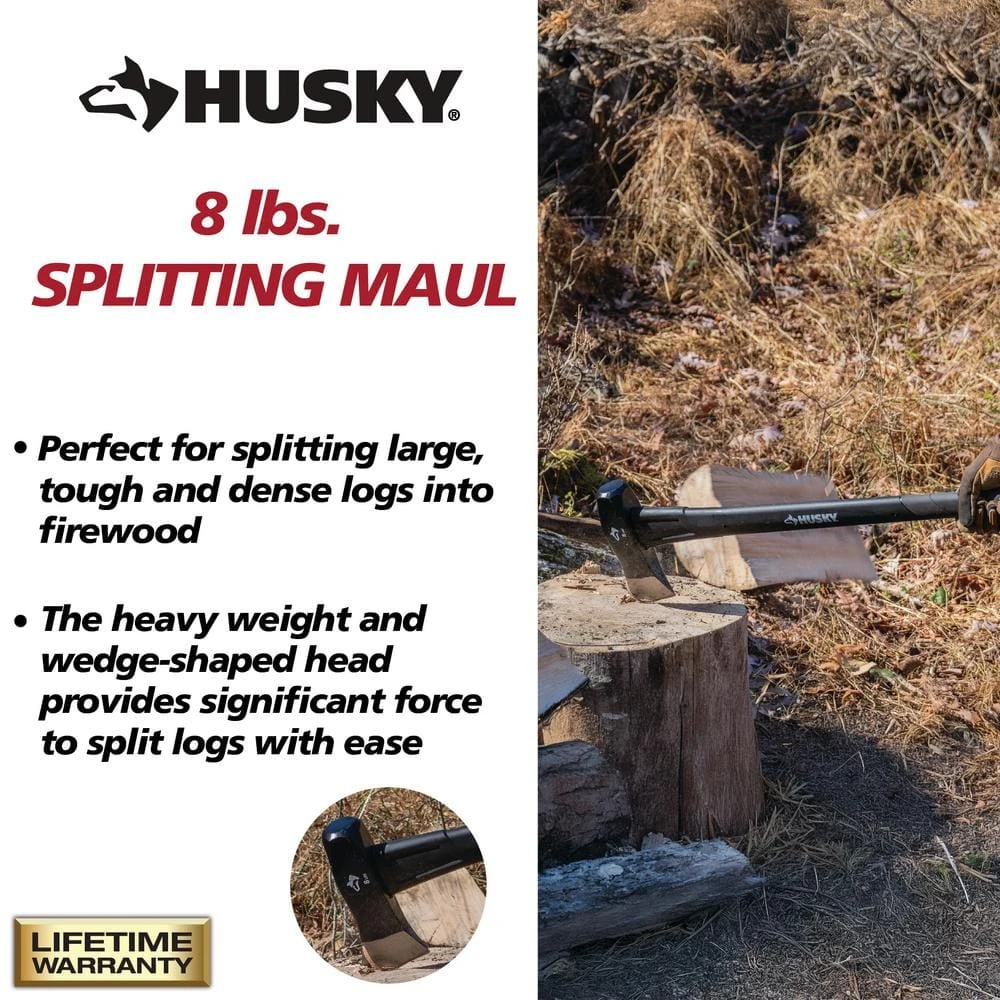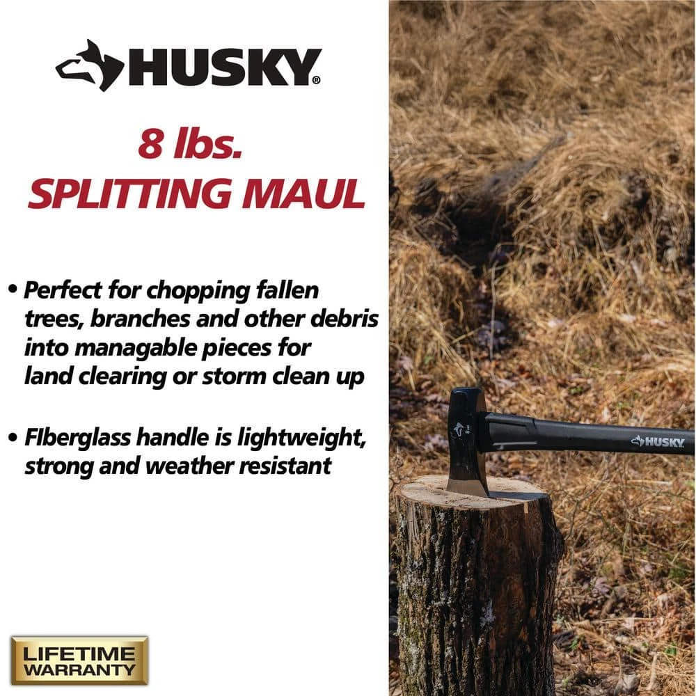 Perfect for splitting logs and Heavy-duty construction for use in construction, repair, chopping wood and demolition. Fiberglass double injected handle with over strike protect, for easy gripping, control, comfort, increased strength. Molded fiberglass handle reduces overall vibration.