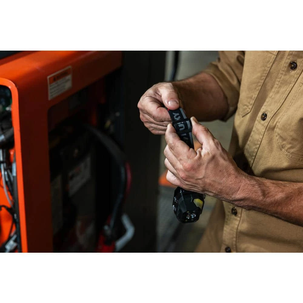 The HUSKY 850 Lumen Dual-Power Headlamp offers exceptional brightness and versatility for personal task lighting and large jobsite illumination. This full-featured design incorporates high-power LED and COB technology, providing brilliant illumination across 8 light modes with adaptable beam patterns-from a 30º Spot to a 120º Flood-and a 160º Wide-Angle for excellent peripheral illumination. It also includes a red mode to preserve night vision and a red flashing mode suitable for alerts or distress signals. The Dual-Power system allows for hybrid flexibility with either the included rechargeable lithium-polymer battery or 3 AAA disposable alkaline batteries (not included). The headlamp is USB Type-C rechargeable, equipped with a lithium-ion battery and charging cable. It features a 900-lumen Turbo mode, an impressive 36-hour ECO mode runtime, variable dimming and an integrated tilt feature for controlling light dispersion to prevent blinding others. Designed to meet job site demands, it has an IP54 water-resistance rating and meets ANSI/FL1 standards for reliability. Backed by the HUSKY lifetime warranty, it ensures long-lasting performance in any environment.