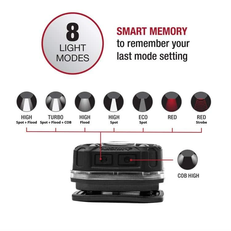- 8 Light Modes: Turbo, High Spot, High Flood, High Combo, High Wide-Angle, ECO, Red, & Red Flashing