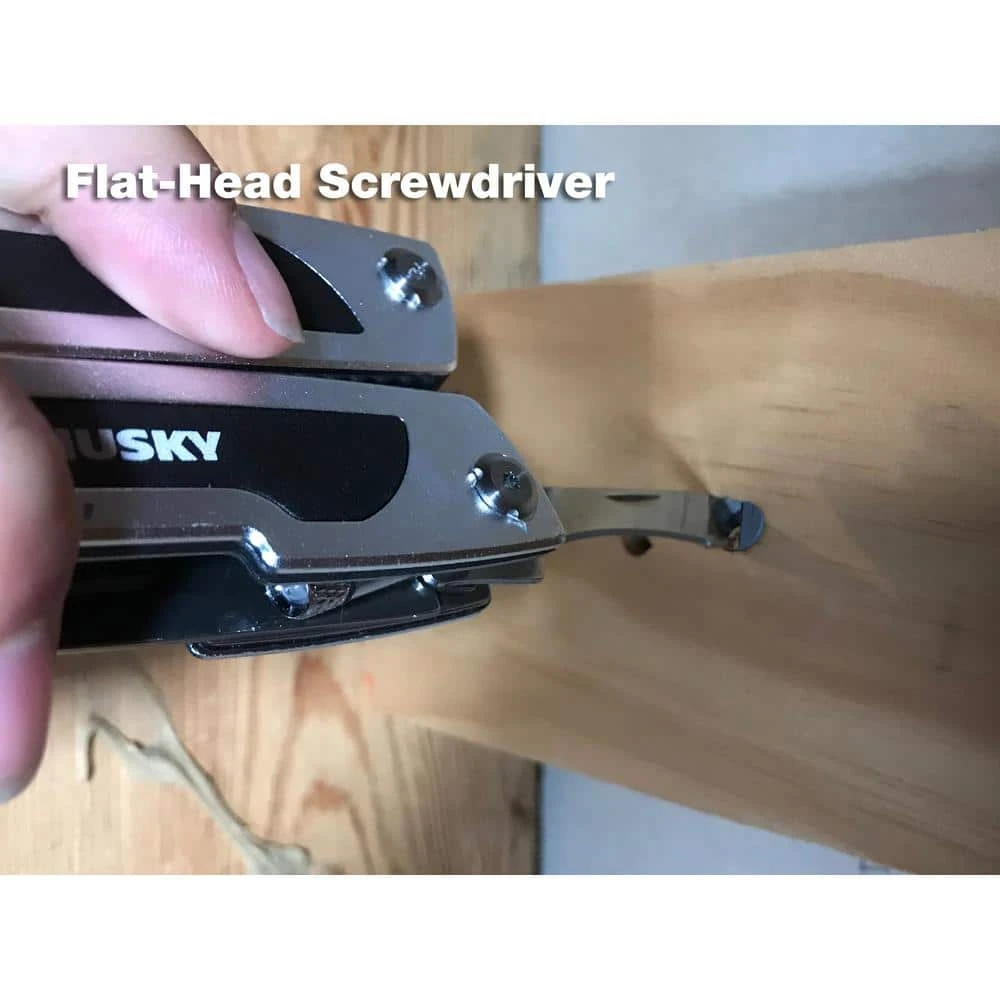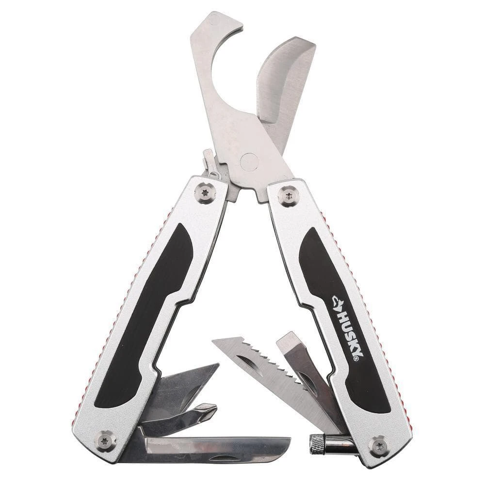 This 9-in-1 Plumber Multi-Tool is a versatile multi-tasking tool and the perfect addition to any plumber’s toolbox. This multi-tool includes a heavy-duty PVC cutter, knife blade, saw-tooth hacksaw, 2 in. ruler, flat head screwdriver, Phillips-head screwdriver, deburring tool, and a pipe reamer. Premium grip handles for user comfort. Folds away neatly for carrying and storage. This tool also features a built-in flashlight for working in poorly lit areas. Built to last and backed by the Husky lifetime warranty.