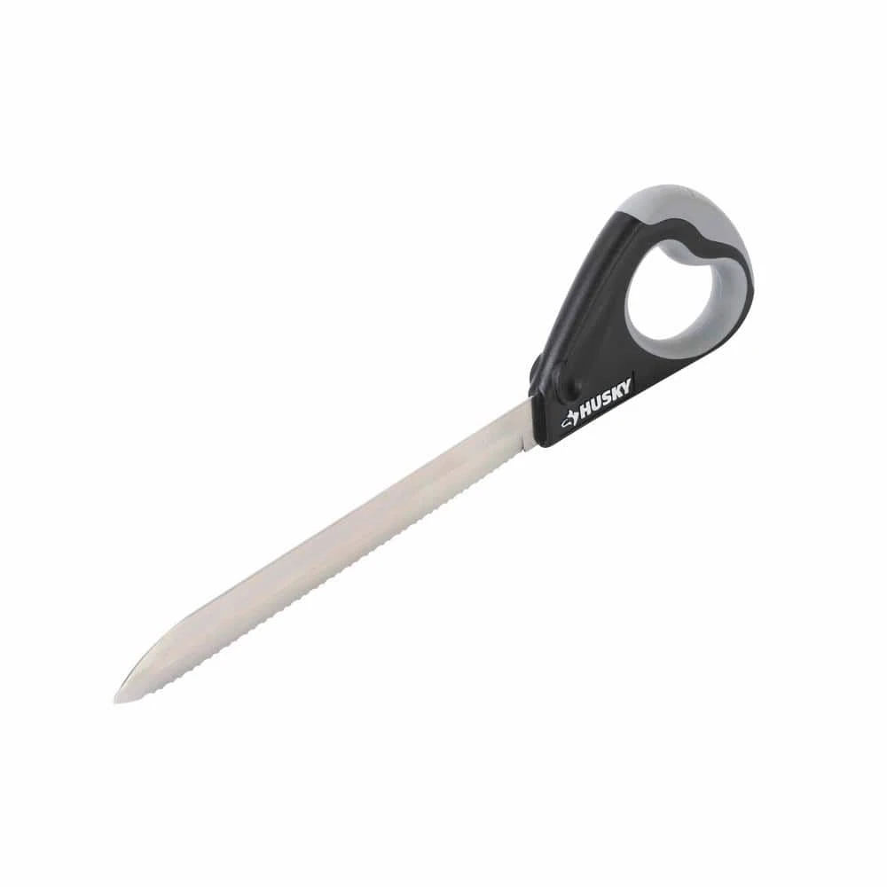 The Husky Insulation Saw cuts mineral wool insulation quickly and with less mess. Due to the unique design of the blade, it acts more like a knife and therefore makes cutting easier. This handy saw can be used to cut rigid insulation, sound proofing materials and non-plastic drop ceiling panels. The rubber grip helps to reduce and minimize fatigue.