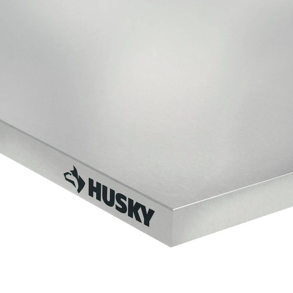 Take your garage to the next level with this Husky Steel Work Surface for Extra Wide Heavy Duty Steel Storage System. This work surface easily fits with your Husky welded garage cabinets, expanding the functionality of your workspace. Made from durable stainless steel, you can work on any project without worrying about your table top.