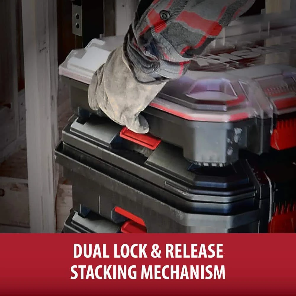 The Husky Build-Out Crate is ideal for bulk storage of larger tools and machinery. The crate features a loading capacity of up to 100 lbs. and impact-resistant construction. No interior dividers or lid. Expand your storage system by connecting hooks and other accessories to the integrated accessory rail. The Husky Build-Out system creates customizable modular storage that gets you and your tools to the job site faster. The system includes tool boxes, organizers, crates, and accessories, all designed to seamlessly secure together in many different configurations.