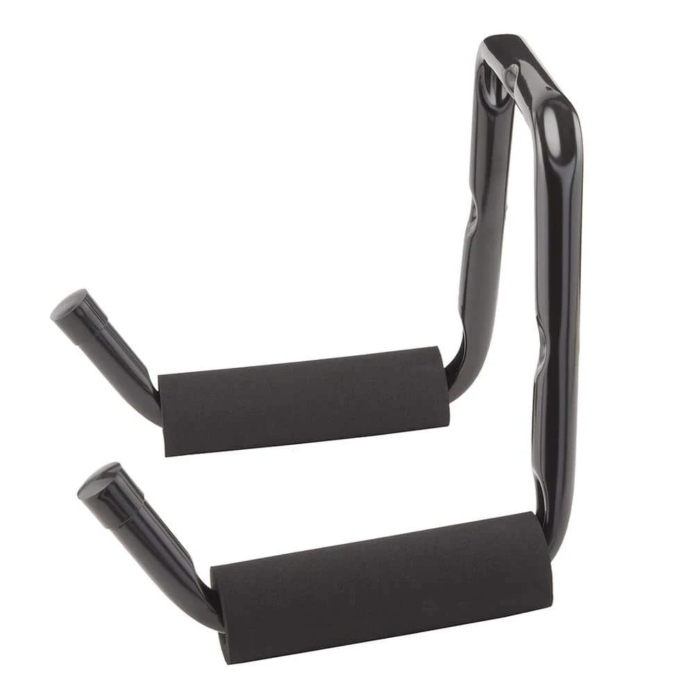 The 75 lbs. capacity Husky Double-Arm Padded Hanger is made of steel and features protective padding. It is ideal for use in the garage, workshop, tool shed, basement and more. The Heavy-Duty hooks are suitable for storing sports equipment, heavy work tools, furniture and a variety of other items. Mounting hardware is included and easy-to-follow instructions can be found on the label. Recommended to mount to studs.