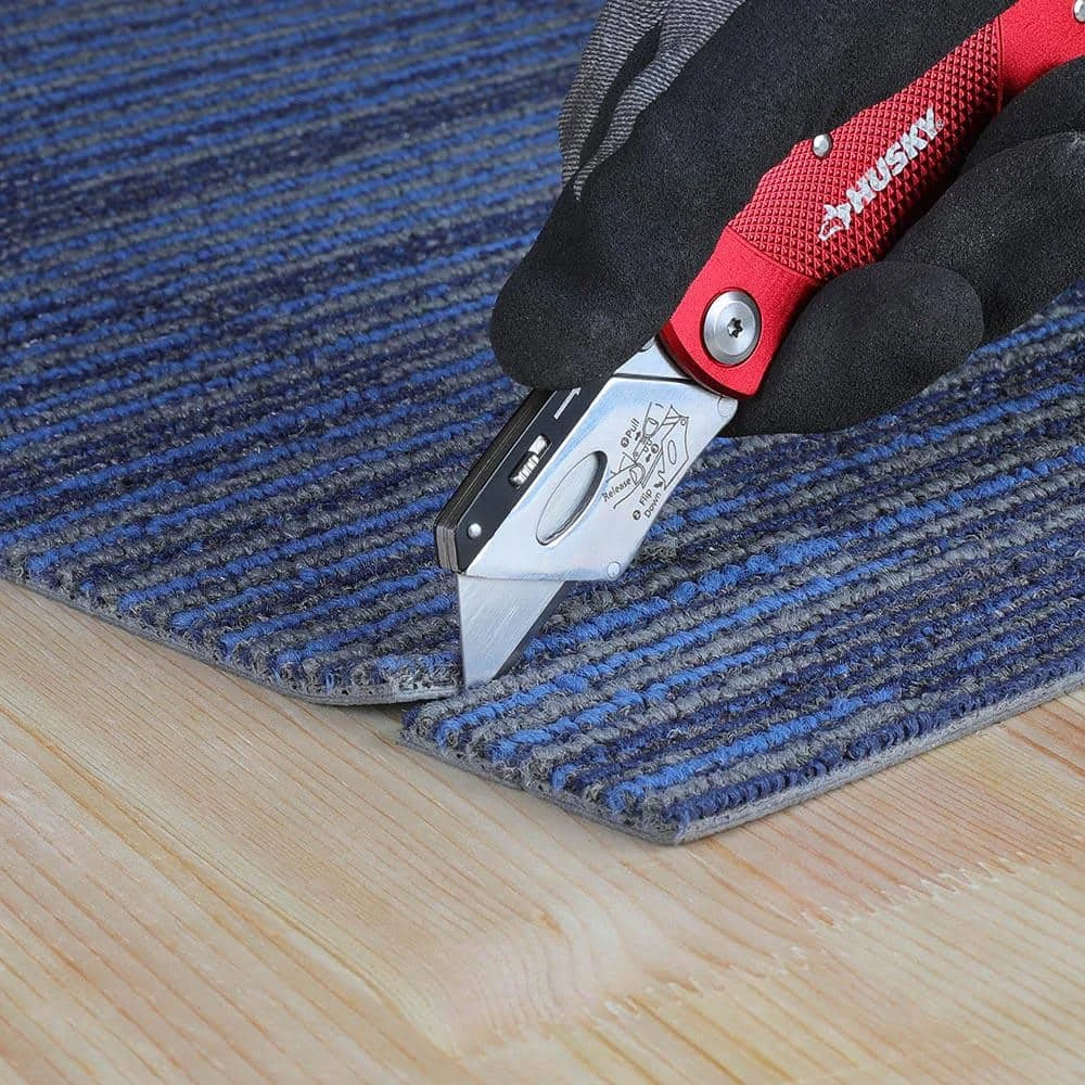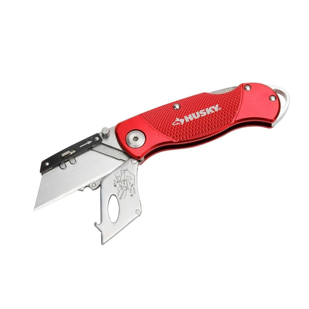 Husky Folding Lock-Back Utility Knife locks in place for efficient cutting. The handle is crafted of aluminum for strength. The knife features a folding design to help ensure safety. Includes 10-blades. All Husky hand tools are backed by a -the best in the industry. In the unlikely event that a Husky tool breaks, we’ll replace it free of charge. See product packaging for details.