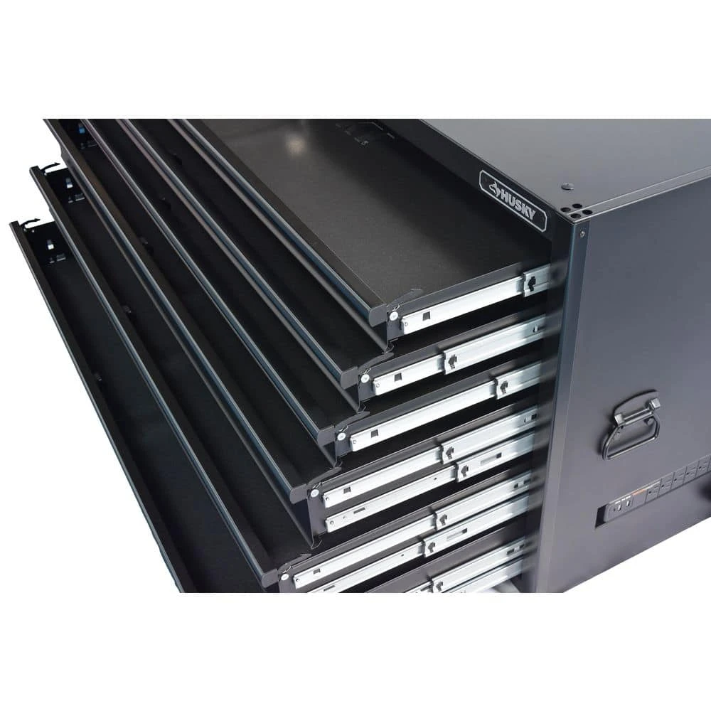 - Pre-cut, premium solid drawer liners and Husky embossed top mat keep your tools in place