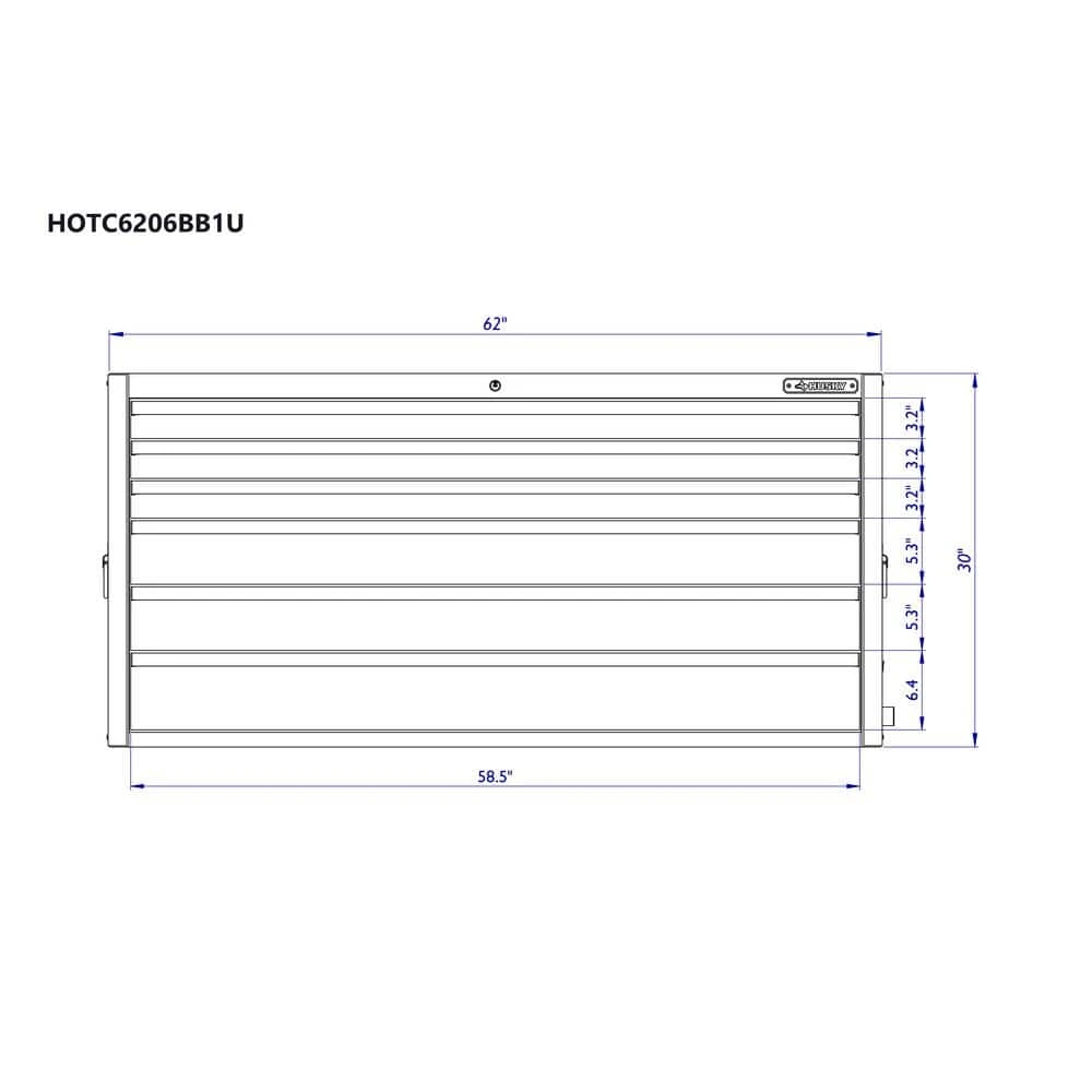 - Inner drawer dimensions (approximate): 3 top drawers 57.64 in W x 21.85 in. deep x 2.80 height, 2 middle drawers – 57.64 w x 21.85 in. deep x 4.80 in height, 1 bottom drawer 57.64 in. w x 21.85 in. deep x 5.86 in. height