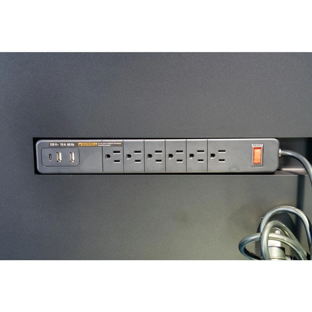 - Integrated power strip with 6-outlets, 2 USB ports and 1 USB-C port to power tools and other electronic devices
