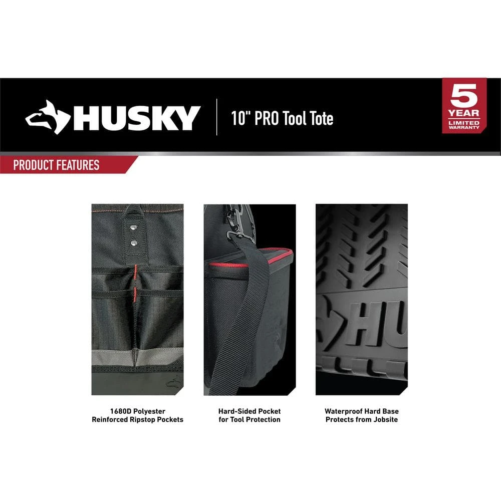 - 10 in. PRO Tool Tote is designed for harsh jobsite conditions