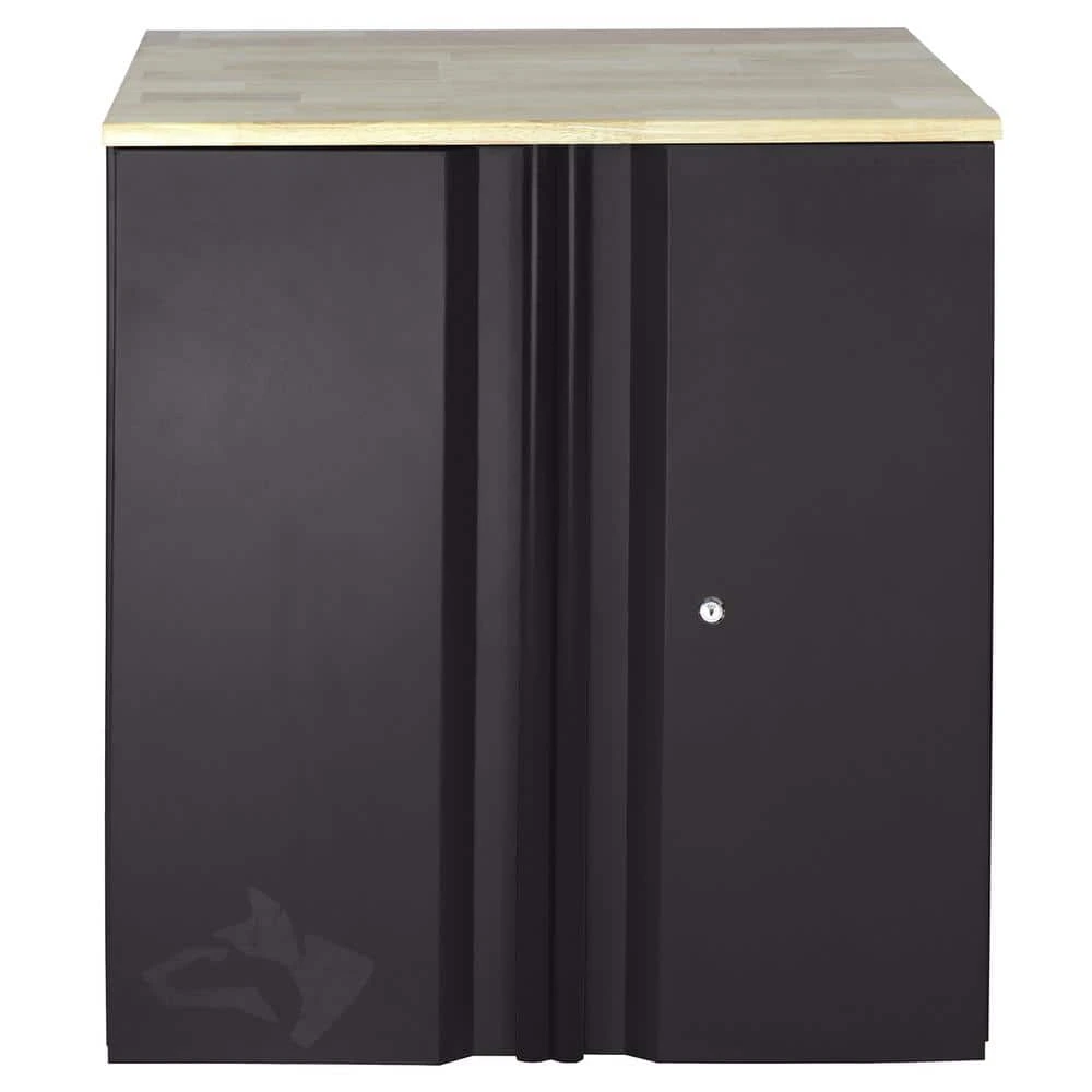 Organize your garage with this Husky heavy-duty two-door base cabinet. With a weight capacity of up to 900 lbs., and one adjustable height shelf, you can store your tools and equipment. A three-point lock and two soft-close doors keep items safe. This pre-assembled cabinet offers tough 20-Gauge steel construction for lasting use.